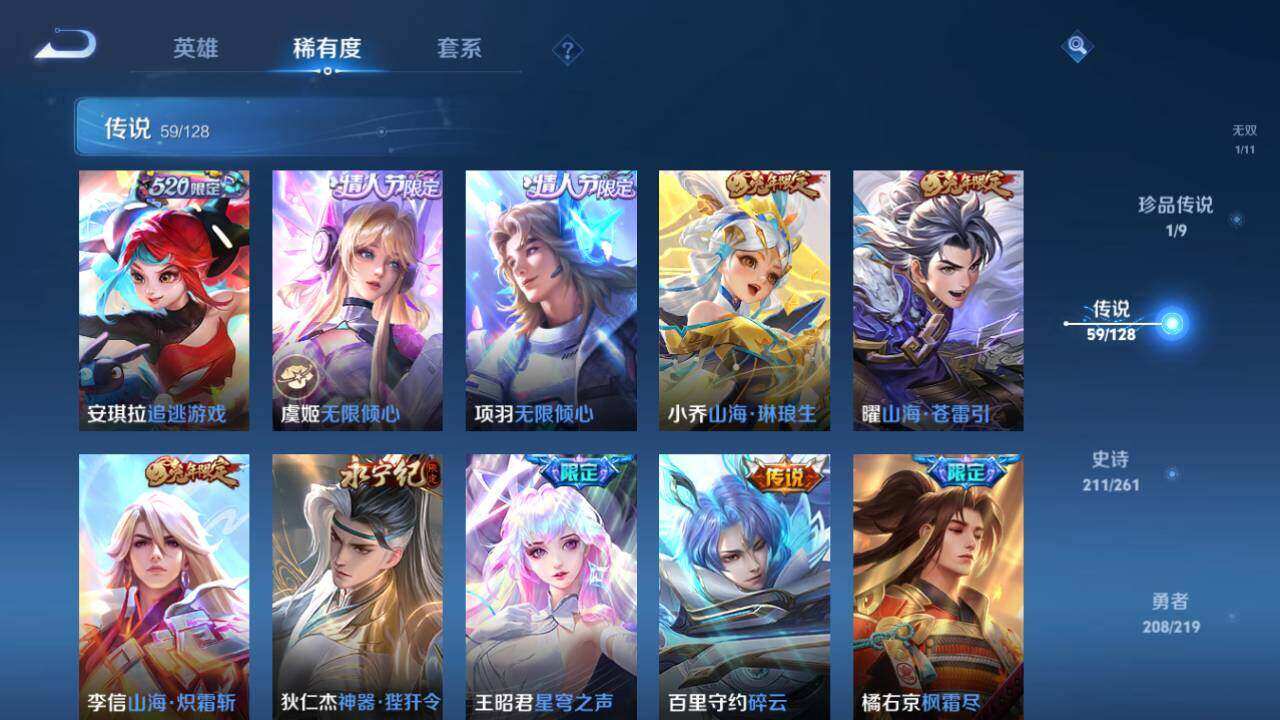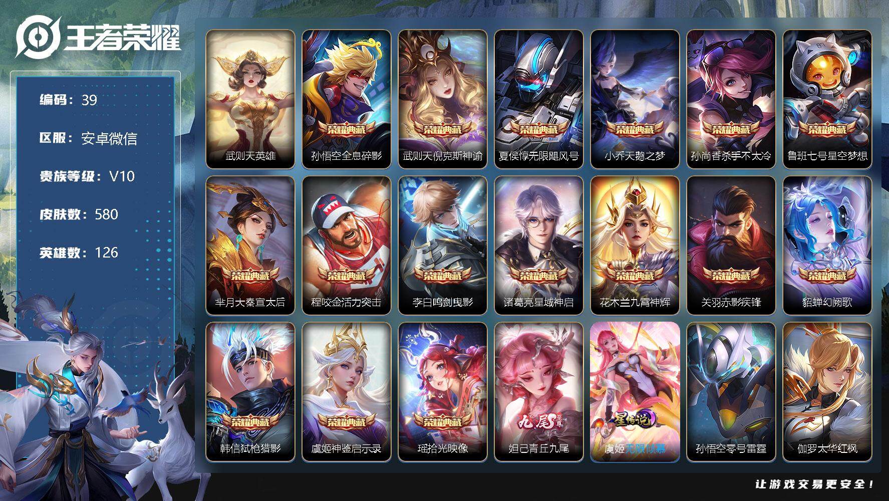 [12151471]AK733-有二次-安卓-V10-126英雄-580皮肤-17水-0珍品无双-1无双-1珍品传说-59传说-210史诗