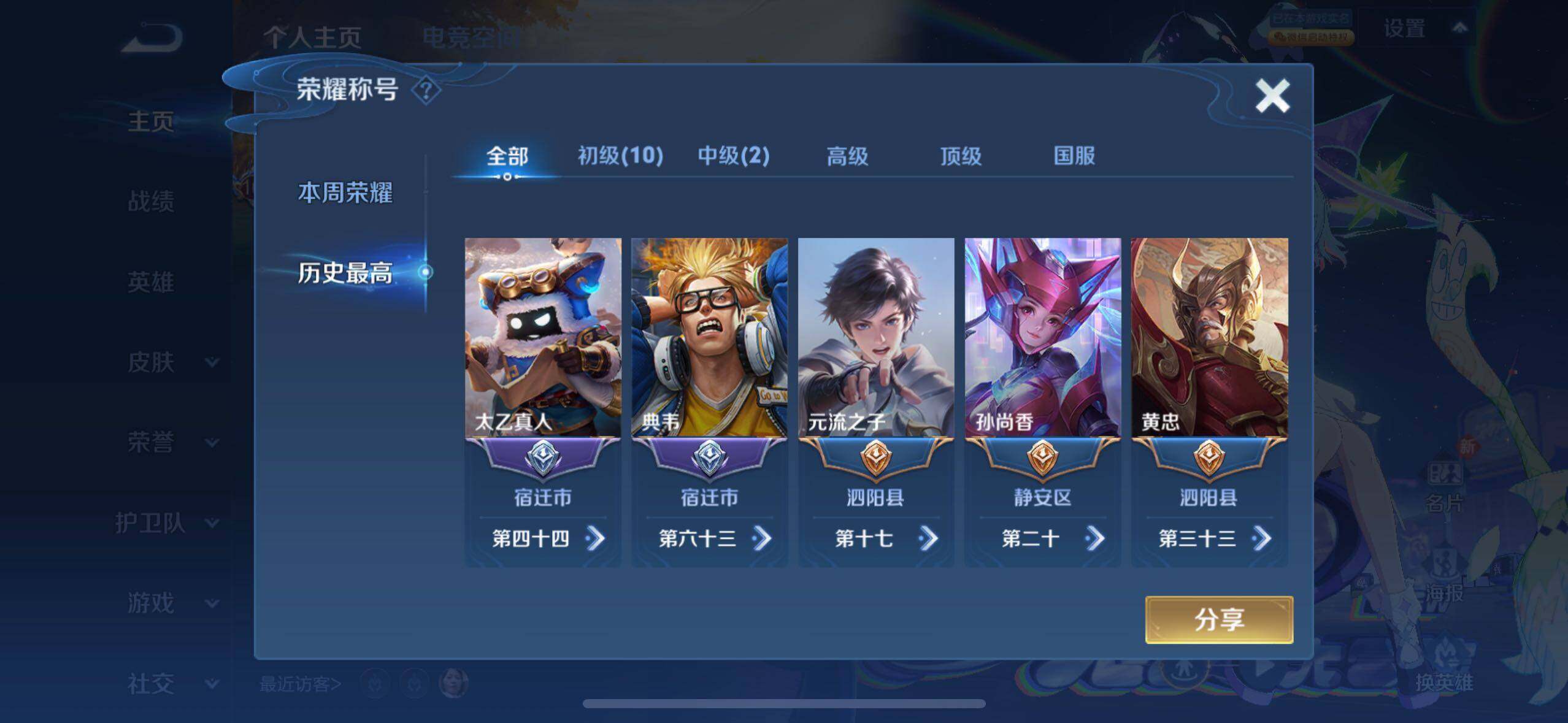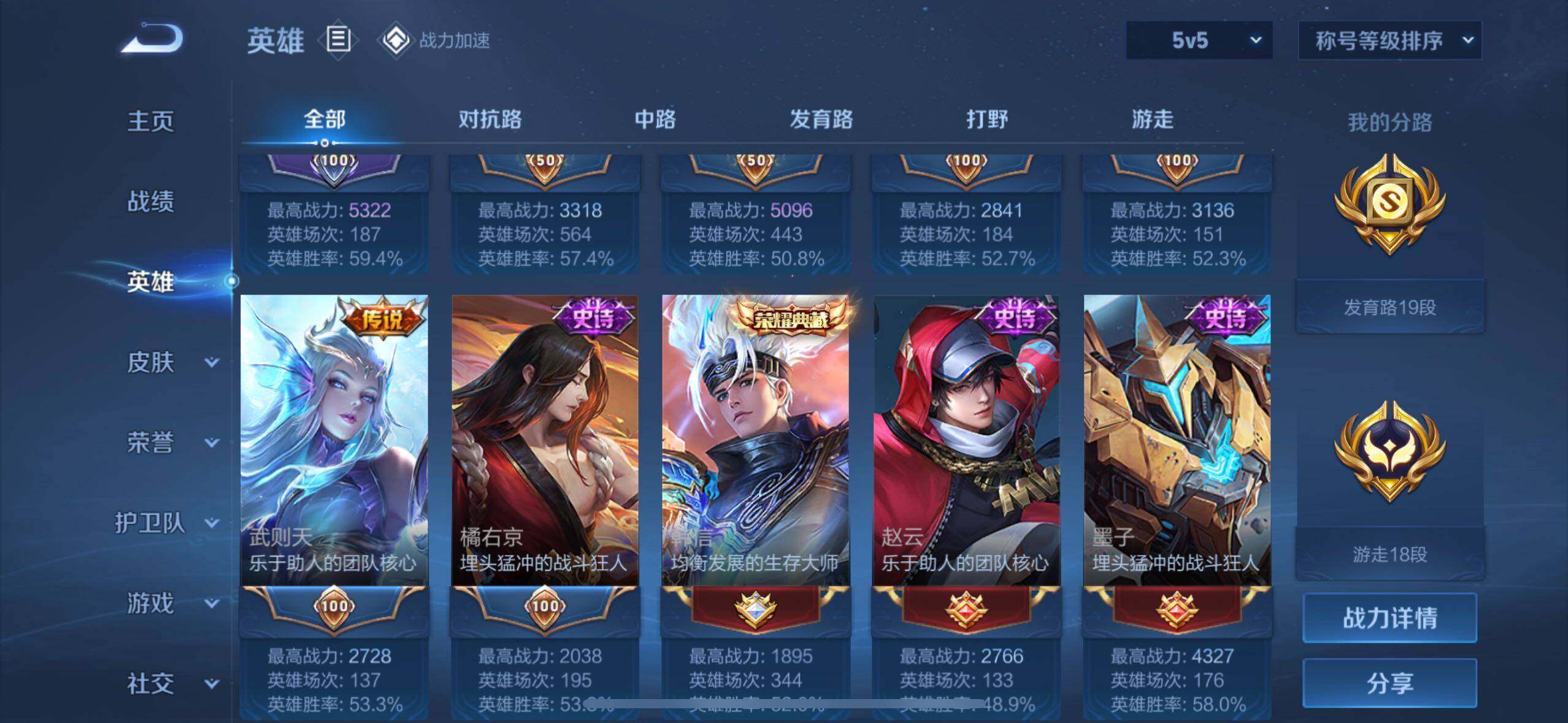 - [11604449]V5 2传说 106英雄 91皮肤 可修改实名 优质装备:末日机甲-孙尚香(绿蚂蚱),超时空战士-狄仁杰 限定皮:李小龙,冰霜恋舞曲 史诗皮:茶境仙,修罗,绅士熊喵,纤云弄巧,繁星吟游(呼啦呼啦),拒霜思,逐浪之夏,鹰眼统帅,未来纪元-赵云
