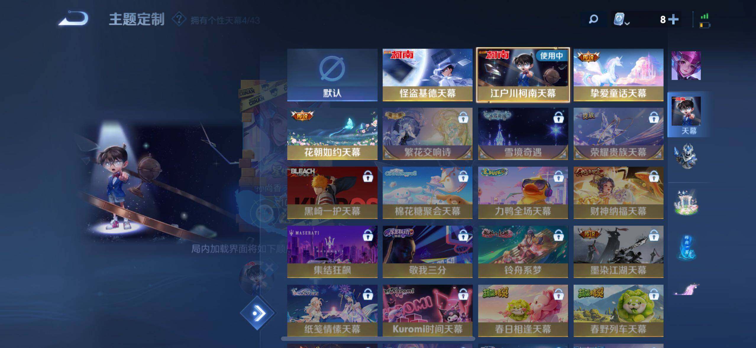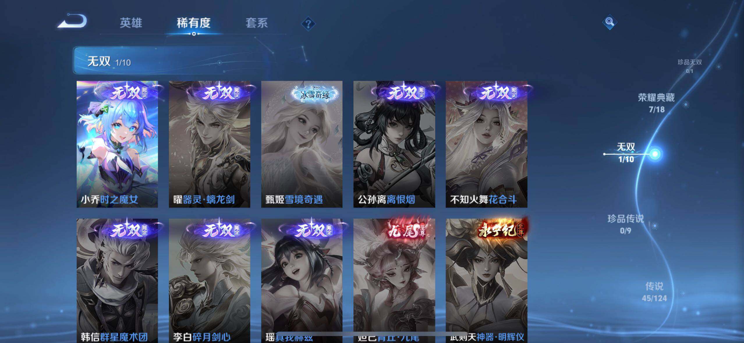 武则天女帝,小乔天鹅之梦,夏侯惇无限飓风号,孙尚香杀手不太冷,芈月大秦宣太后,孙悟空全息碎影,诸葛亮星域神启,韩信弑枪猎影