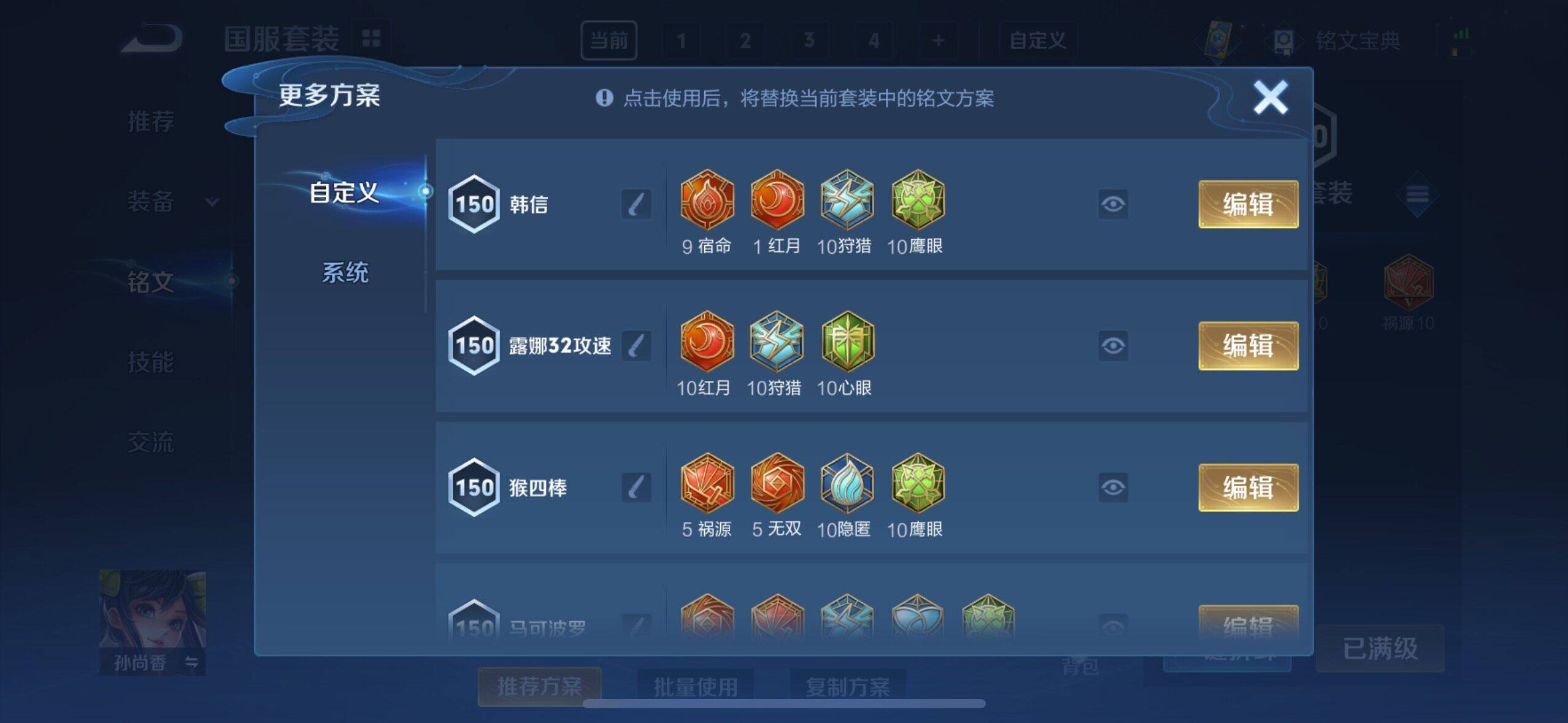 娜可露露晚萤,李元芳逐浪之夏,不知火舞魅语,公孙离无限星赏官,大乔猫狗日记,孙策猫狗日记,阿轲节奏热浪,露娜紫霞仙子,诸葛亮黄金分割率,王昭君偶像歌手,韩信白龙吟,项羽苍穹之光,孙尚香时之恋人,阿轲暗夜猫娘,雅典娜冰冠公主,吕布末日机甲,鲁班七号电玩小子,橘右京修罗,墨子龙骑士,嬴政摇滚巨星,刘禅绅士熊喵,刘禅天才门将,白起星夜王子,安琪拉心灵骇客,程咬金功夫厨神,刘邦德古拉伯爵,兰陵王暗隐猎兽者,曹操幽灵船长,宫本武藏鬼剑武藏,亚瑟心灵战警,蔡文姬舞动绿茵,廉颇地狱岩魂,小乔缤纷独角兽,夏侯惇乘风破浪,花木兰水晶猎龙者,铠曙光守护者,百里玄策热力回旋,墨子金属风暴,百里玄策原初追逐者,吕布圣诞狂欢,貂蝉圣诞恋歌,百里守约特工魅影,嬴政暗夜贵公子,雅典娜黎明之约,李白千年之狐,夏洛特永昼,澜赏金猎手,刘禅电玩·爆裂旋风,安琪拉乘龙·聚宝船,李白谪仙醉月