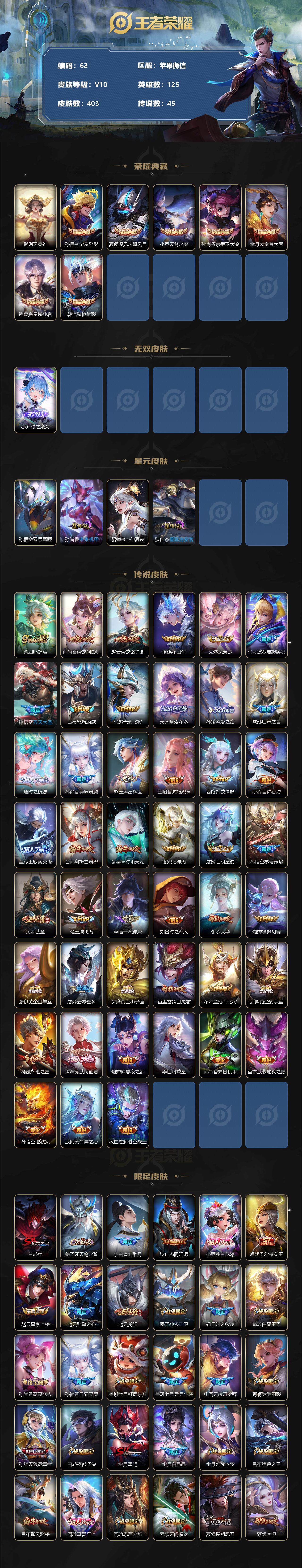 [12151584]AK444-有二次-苹果WX-V10-125英雄-403皮肤-8典藏-1无双-45传说-126史诗