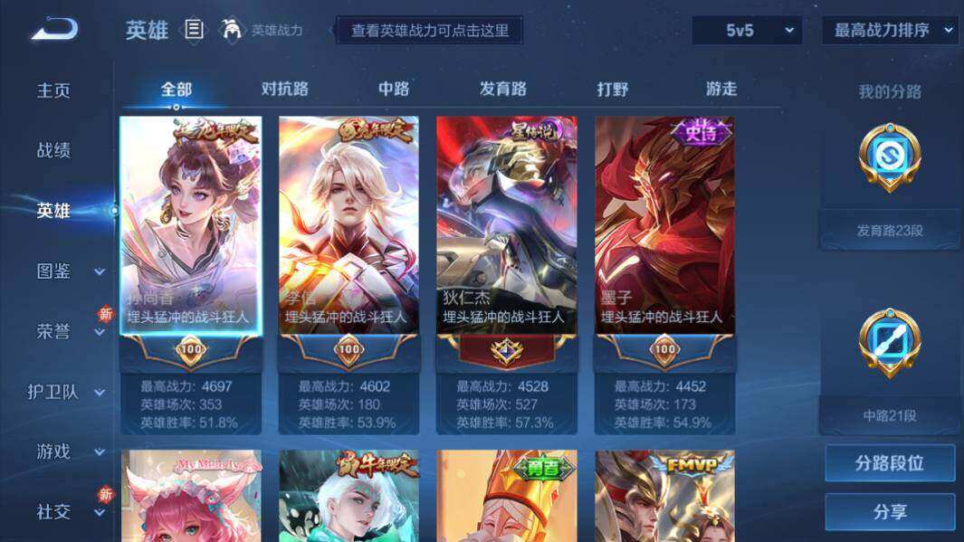 - PX_2107333-贵族等级: V7 英雄数: 125 皮肤数: 132 传说皮: 久胜战神,末日机甲-孙尚香,地狱火 限定皮: 梁祝,辉光之辰,神威,飞衡,凤求凰,至尊宝,五谷丰年,鸣野蒿