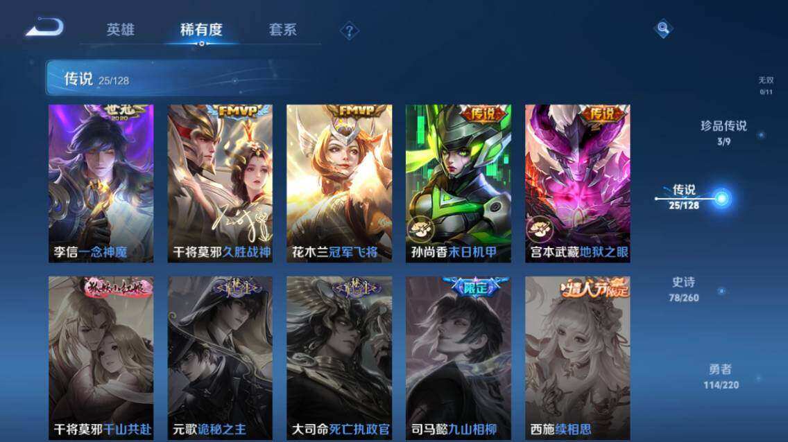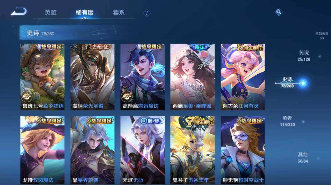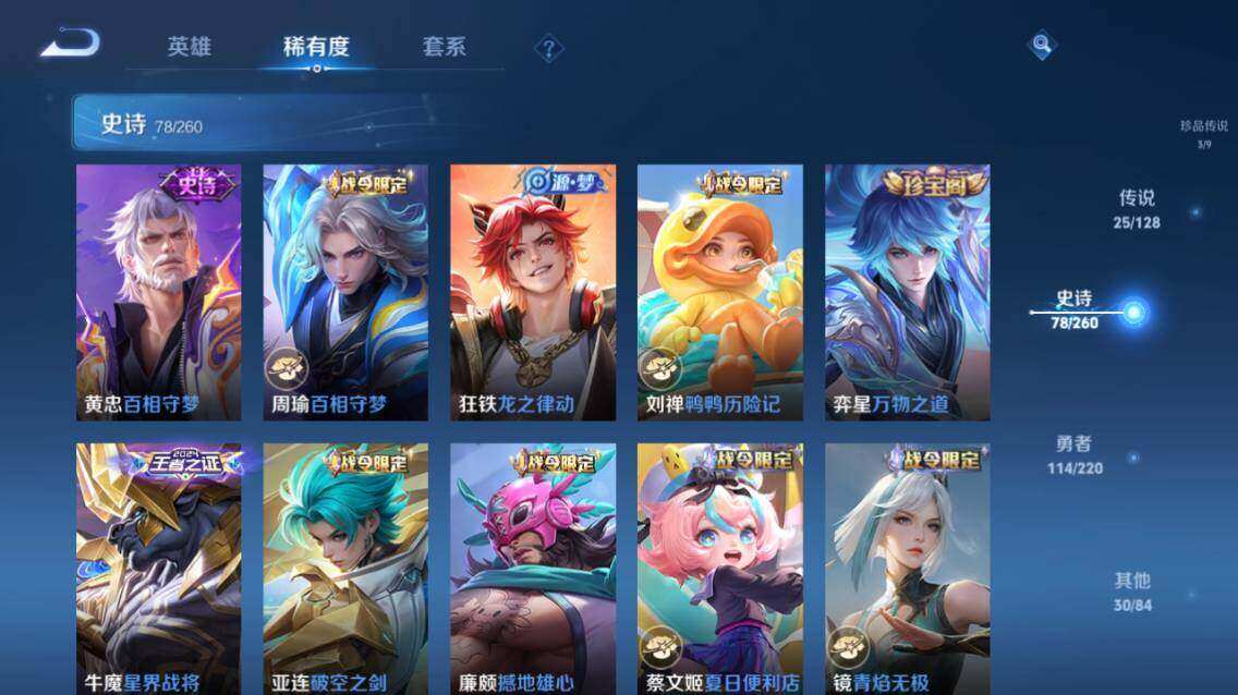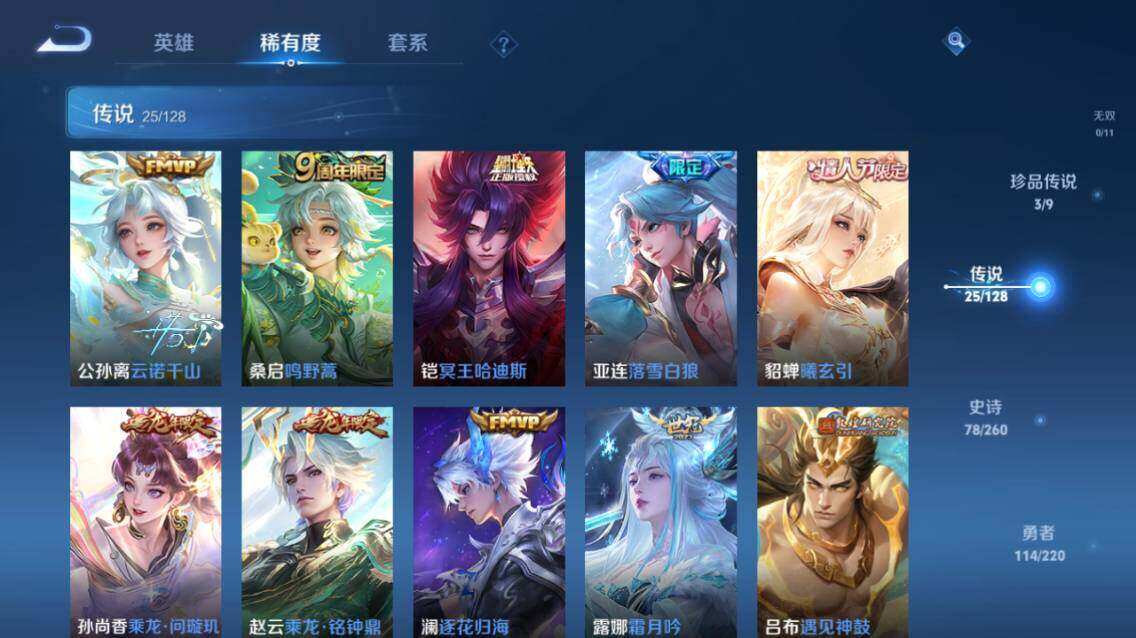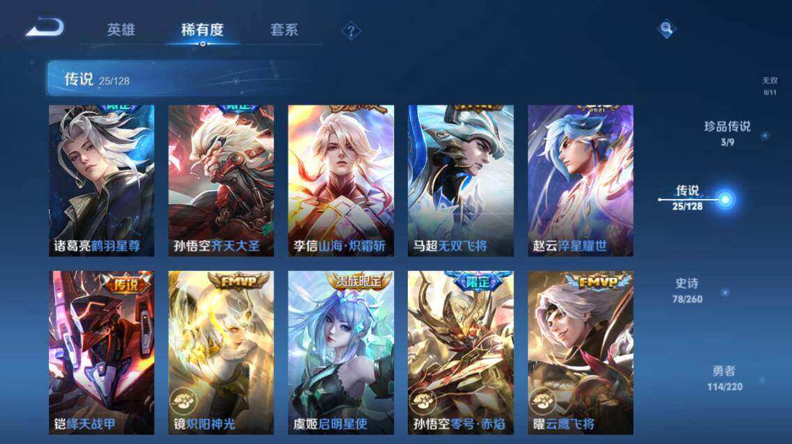 [12151766]【商品标题】:安卓WX-V8-最强王者段位-124英雄-251皮肤-1典藏-0珍品无双-0无双-3珍品传说-25传说-78史诗