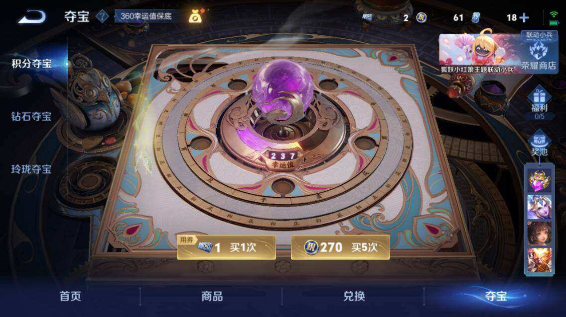 - PX_2083755-贵族等级: V6 英雄数: 107 皮肤数: 80 传说皮: 淬星耀世,超时空战士-狄仁杰,幻光神枪 限定皮: 无尽星芒,五谷丰年