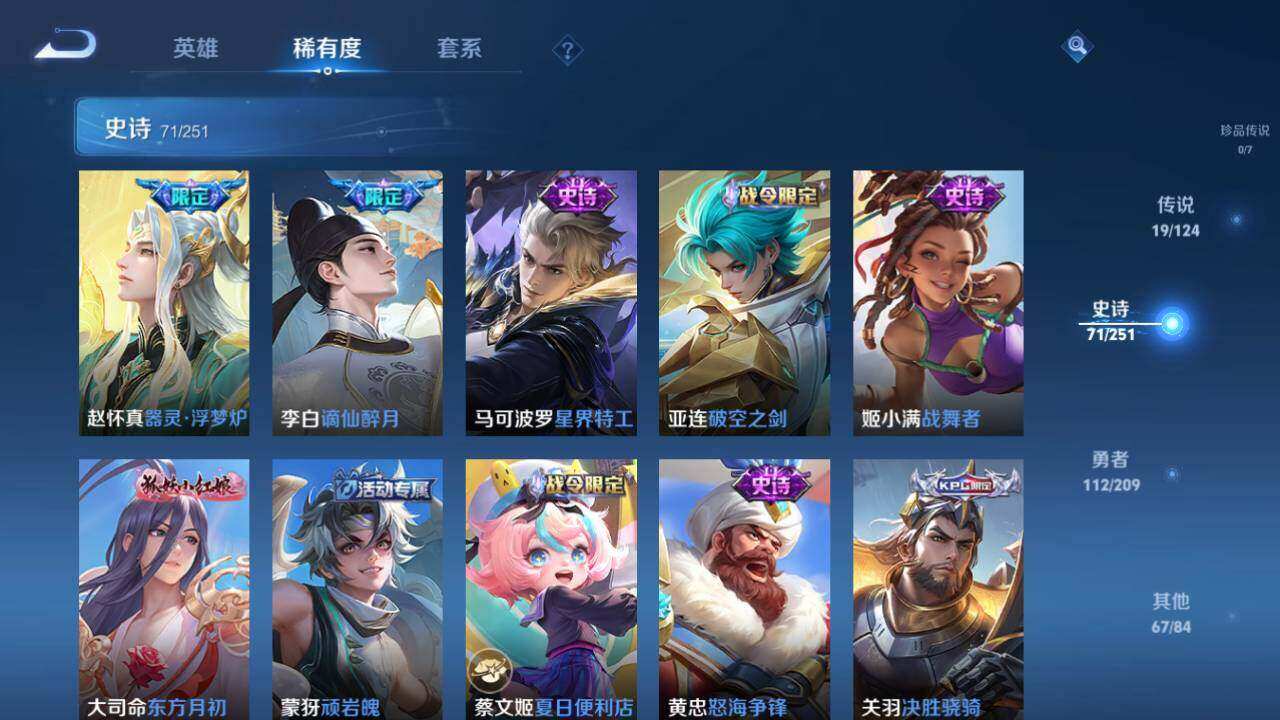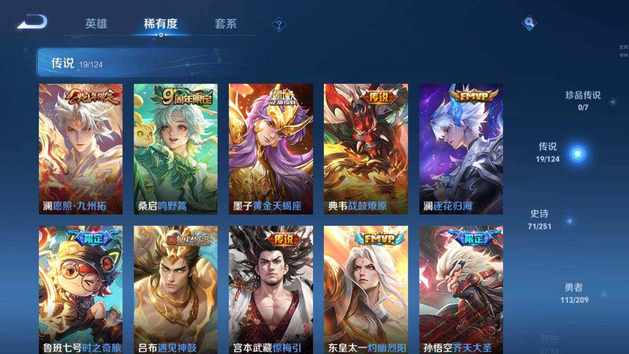 - [11280547]V7 4传说 123英雄 206皮肤 可修改实名 传说皮:久胜战神,时之恋人-刘备(电焊工) 珍宝阁皮:蔷薇恋人,女武神,玩趣恶龙 限定皮:鸣野蒿,时之彼端,高山流水,怒海麟威,五谷丰年,李小龙,逐梦之光,朱雀志(守约年限),默契交锋-花木兰,玉兔公主 史诗皮:星界战将,石田雨龙,百相守梦-黄忠,蔬乡物语(鲁班七号),紫霞仙子,黄金分割率,特工魅影,千年之狐,江河有灵,蒙恬荣光圣徽,冰冠公主,无限星赏官,魅语,末日机甲-吕布,乱世虎臣,节奏热浪,修罗,女仆咖啡,水果甜心,天才门将,星夜王子,心灵骇客,时之奇旅-安琪拉,功夫厨神,德古拉伯爵,暗隐猎兽者,幽灵船长,鬼剑武藏,心灵战警,地狱岩魂,纤云弄巧,乘风破浪,逐浪之夏,水晶猎龙者,曙光守护者,热力回旋,金属风暴,原初追逐者,圣诞狂欢,圣诞恋歌,鹰眼统帅,暗夜贵公子,魅力维加斯,黎明之约,无心,未来纪元-赵云