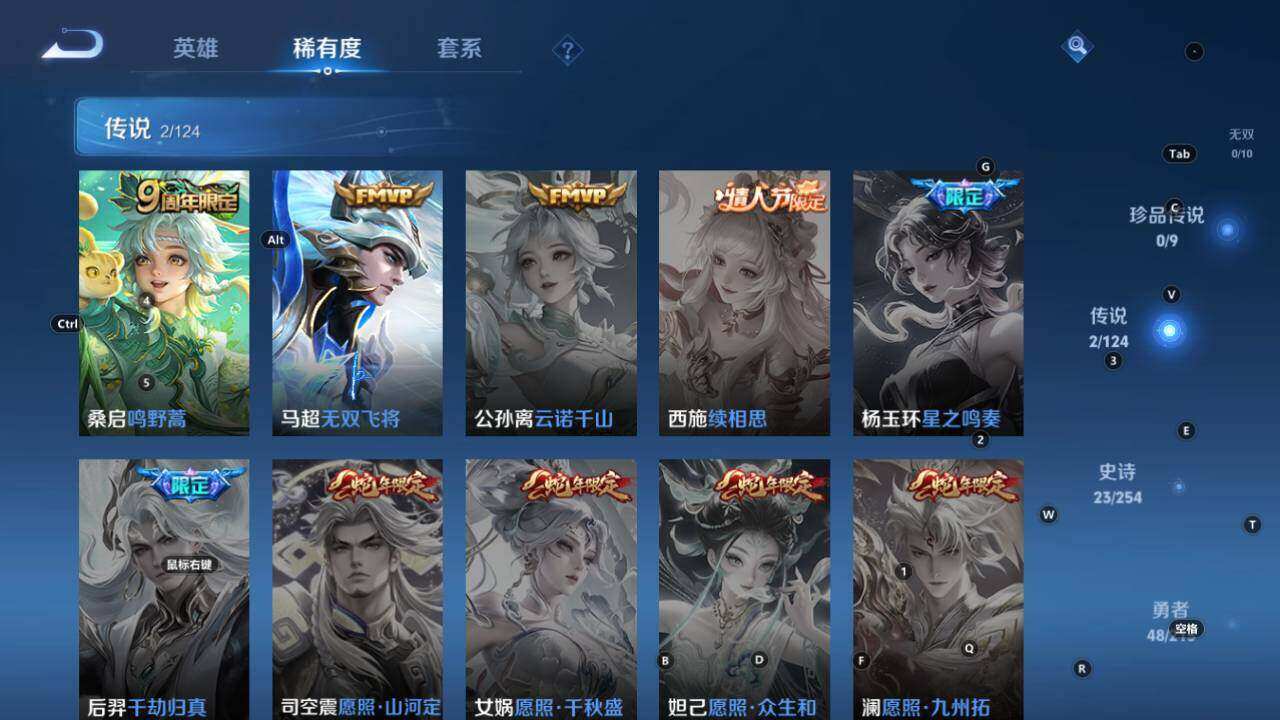 【限定皮肤】:姜子牙天穹之誓,狄仁杰阴阳师,赵云皇家上将,孙尚香蔷薇恋人,钟无艳超时空战士,芈月幻夜卜梦,甄姬落雪兰心,达摩沙漠行僧,项羽海滩派对,兰陵王金庭之子,后羿圣弓游侠,李元芳云中旅人,钟馗驱傩正仪,鬼谷子五谷丰年,黄忠火炮绅士,苏烈千军破阵,百里玄策原初追逐者,沈梦溪大漠名商,裴擒虎擒涛扼浪,鲁班大师探海日志,桑启海盐诗旅,张良古海寻踪,鬼谷子天穹祈灯,沈梦溪龙舞盛年