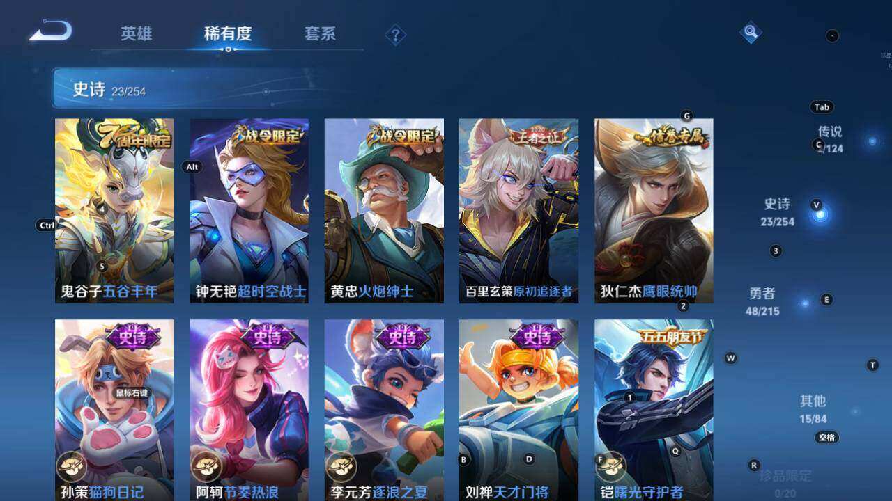 【史诗皮肤】:赵云皇家上将,赵云未来纪元,貂蝉圣诞恋歌,甄姬冰雪圆舞曲,宫本武藏鬼剑武藏,孙尚香蔷薇恋人,孙尚香水果甜心,嬴政摇滚巨星,妲己魅力维加斯,妲己女仆咖啡,墨子金属风暴,刘禅绅士熊喵,百里守约特工魅影,铠曙光守护者,刘禅天才门将,李元芳逐浪之夏,阿轲节奏热浪,孙策猫狗日记,狄仁杰鹰眼统帅,百里玄策原初追逐者,黄忠火炮绅士,钟无艳超时空战士,鬼谷子五谷丰年