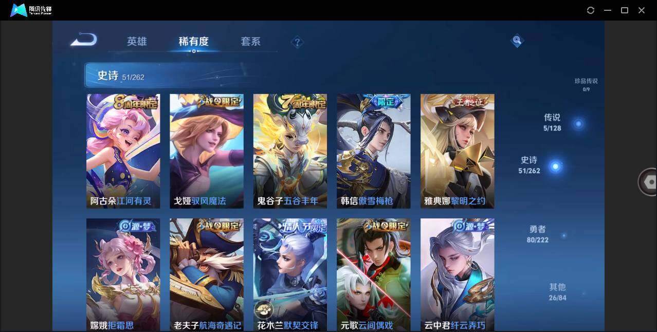 - [11964272]V7 8传说 124英雄 225皮肤 可修改实名 优质装备:黄金射手座,云霓雀翎,末日机甲-孙尚香(绿蚂蚱),地狱火,地狱之眼,黄金天蝎座 珍宝阁皮:妄想食味,女武神 限定皮:鸣野蒿,高山流水,五谷丰年,青龙志(铠年限),梁祝,李小龙,逐梦之影,朱雀志(守约年限),一生所爱,大圣娶亲,寅虎·瑞焰(虎皮蛋子),时之奇旅-妲己 史诗皮:芈月浮光幕影,海诺心动手记,蔬乡物语(鲁班七号),百相守梦-黄忠,守夜人,苍穹之光,电玩小子(小书包),白龙吟,黄金分割率,特工魅影,千年之狐,冰冠公主,偶像歌手,暗夜猫娘,龙骑士(小龙虾),末日机甲-吕布,猫狗日记-孙策,乱世虎臣,节奏热浪,水果甜心,星夜王子,心灵骇客,功夫厨神,暗隐猎兽者,幽灵船长,鬼剑武藏,心灵战警,纤云弄巧,繁星吟游(呼啦呼啦),拒霜思,缤纷独角兽,乘风破浪,逐浪之夏,箭羽风息,金属风暴,原初追逐者,圣诞恋歌,鹰眼统帅,魅力维加斯,无心,未来纪元-赵云