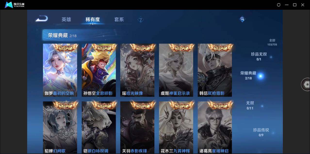 【赛季限定】:芈月重明,夏侯惇朔风刀,典韦穷奇,老夫子醍醐杖,牛魔御旌,钟馗驱傩正仪,鬼谷子原初探秘者,弈星混沌棋,明世隐疑决卦,狂铁御狮,米莱狄御霄,盾山御銮,姜子牙天穹之誓