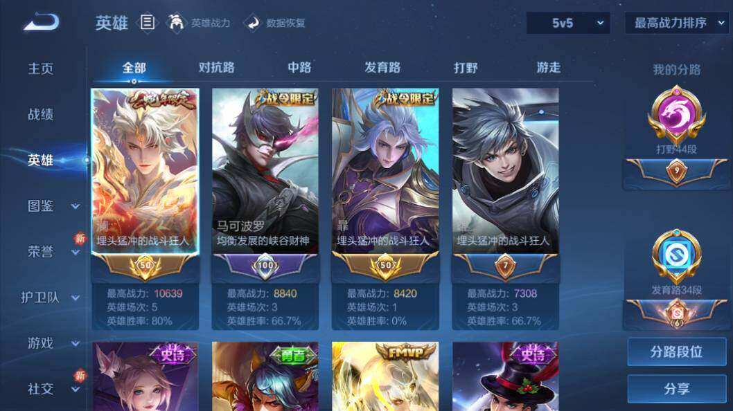 - [11251680]V5 1珍品传说 3传说 55英雄 36皮肤 可修改实名 优质装备:黑崎一护,澜逐花归海 传说皮:典韦战鼓燎原 限定皮:鸣野蒿 史诗皮:龙之律动,百相守梦-周瑜,鬼剑武藏,曙光守护者,圣诞狂欢,魅力维加斯