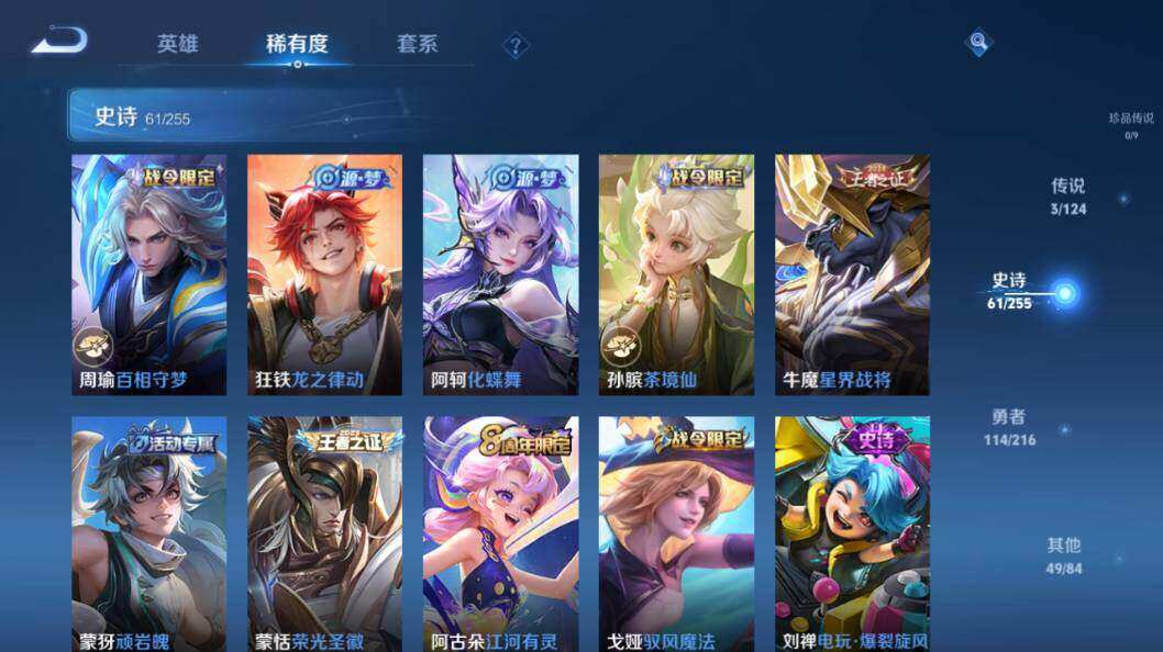 【战令限定】:墨子神迹守卫,白起夜都怪侠,芈月幻夜卜梦,马可波罗暗影游猎,老夫子航海奇遇记,后羿圣弓游侠,钟馗神迹守卫,干将莫邪真爱魔法,黄忠火炮绅士,明世隐吟游魔法,嫦娥暖冬兔眠,西施玲珑珍味,暃星界游侠,戈娅驭风魔法