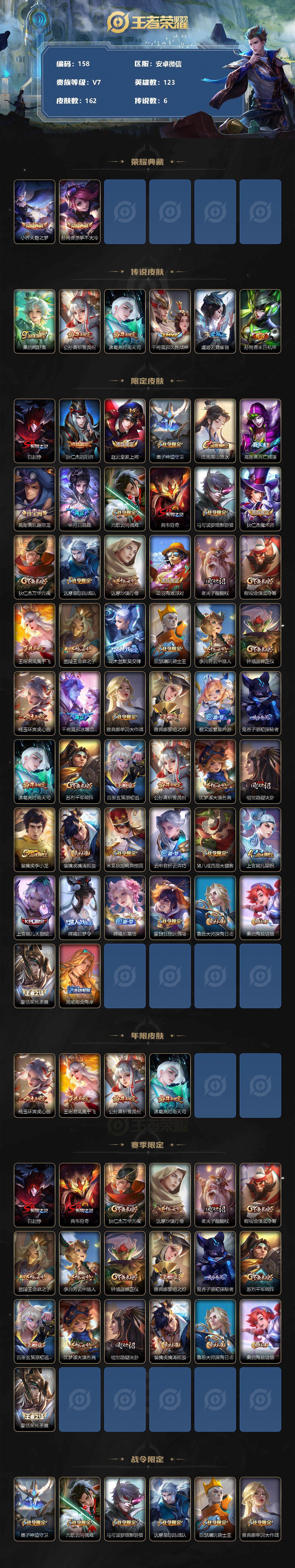[12152618]AK806【商品标题】:安卓WX-V7-永恒钻石II段位-123英雄-162皮肤-2典藏-0珍品无双-0无双-0珍品传说-6传说-50史诗