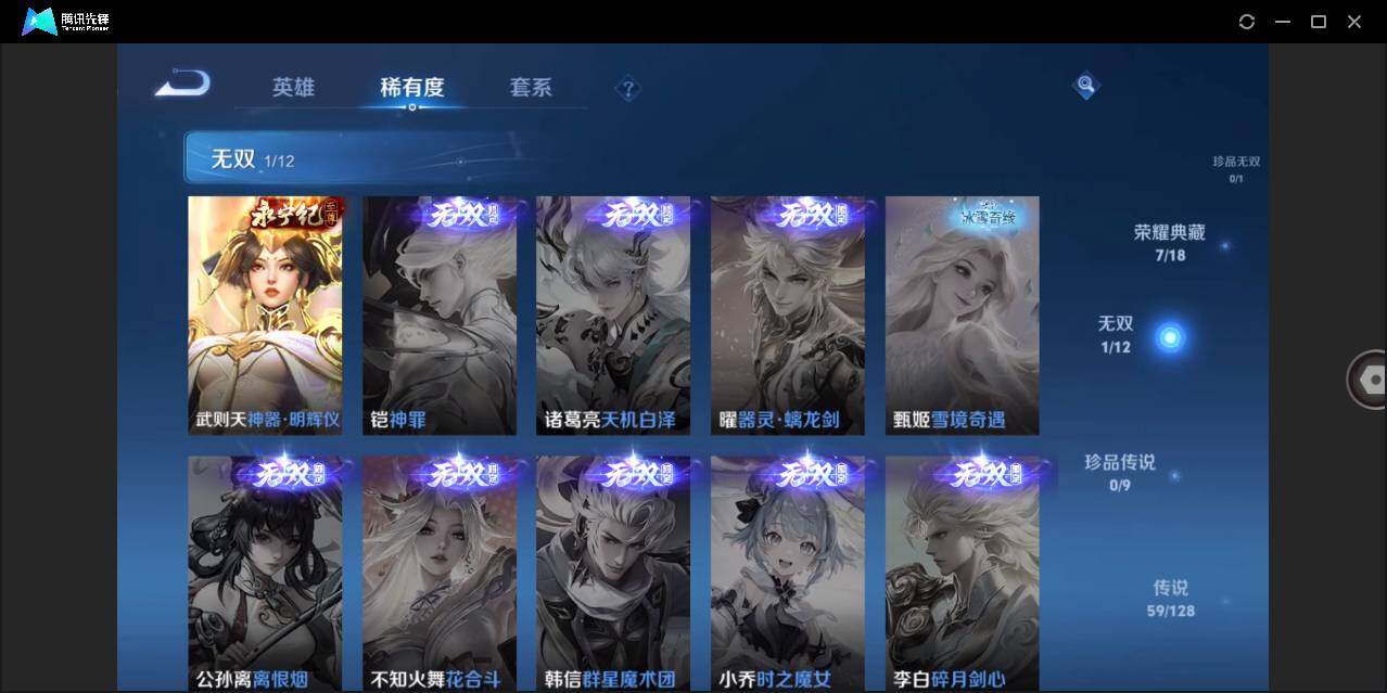 【荣耀典藏】:武则天英雄,武则天倪克斯神谕,夏侯惇无限飓风号,李白鸣剑曳影,花木兰九霄神辉,铠银白咏叹调,貂蝉幻阙歌,韩信弑枪猎影