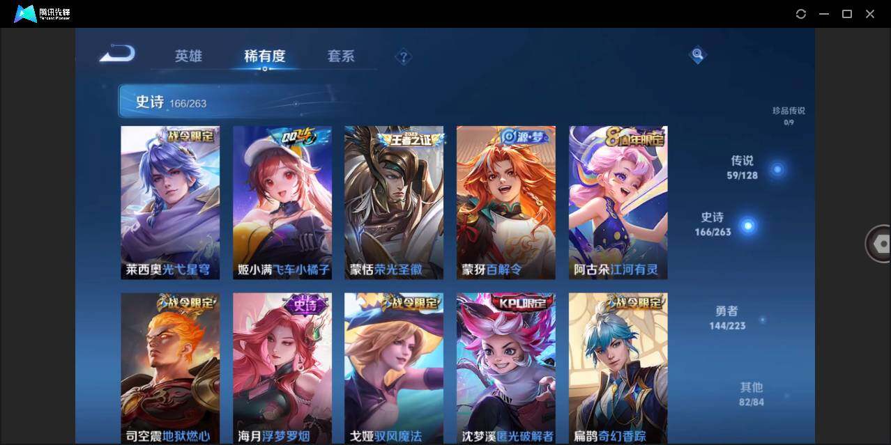 - [11578832]V6 9传说 123英雄 169皮肤 可修改实名 安全保护中 传说皮:黄金狮子座,一念神魔,淬星耀世,云鹰飞将(小将军),无双飞将,时之恋人-刘备(电焊工),澜逐花归海 珍宝阁皮:妄想食味 限定皮:逐霄战戟,鸣野蒿,诗剑行,李小龙 史诗皮:星界战将,茶境仙,谪仙醉月,鸭鸭历险记-刘禅,龙之律动,石田雨龙,百相守梦-百里守约,埋骨钱,星界特工,蔬乡物语(鲁班七号),炽弈燎原,破空之剑,紫霞仙子,电玩小子(小书包),特工魅影,江河有灵,高渐离燃音魔法,百解令(蒙犽),冰冠公主,节奏热浪,女仆咖啡,水果甜心,星夜王子,德古拉伯爵,暗隐猎兽者,鬼剑武藏,暗渊魔法,心灵战警,天秀·启明,舞动绿茵,拒霜思,缤纷独角兽,乘风破浪,热力回旋,原初追逐者,圣诞狂欢,圣诞恋歌,鹰眼统帅,魅力维加斯,未来纪元-赵云