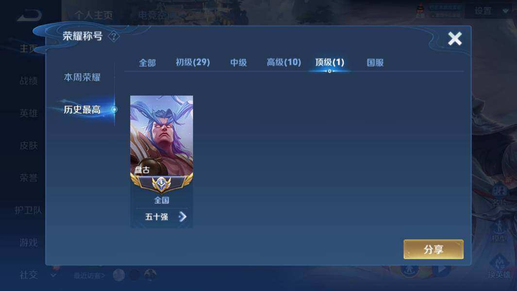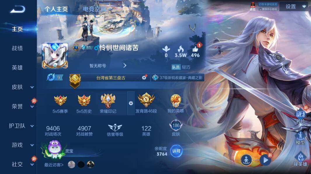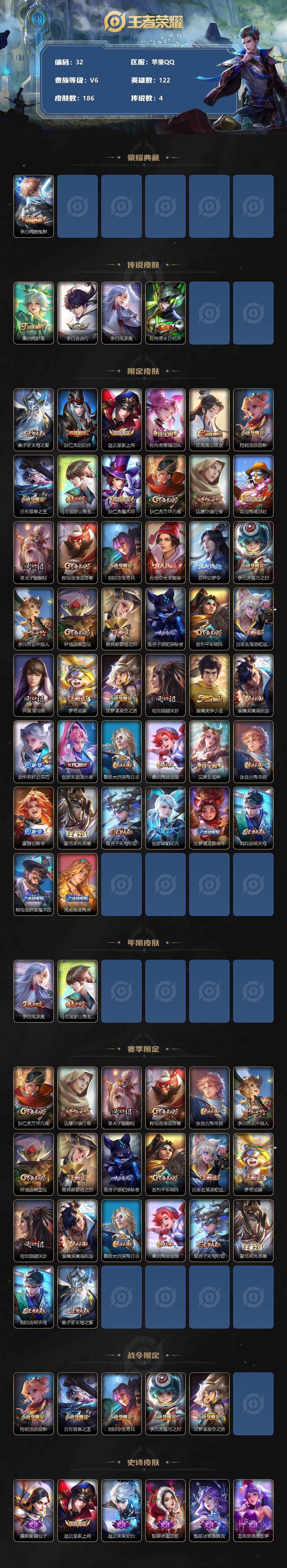 [12151447]MQ719 盘古小国标发育路46段!苹果Q-V6-最强王者段位-122英雄-186皮肤-1典藏-0珍品无双-0无双-0珍品传说-4传说-55史诗