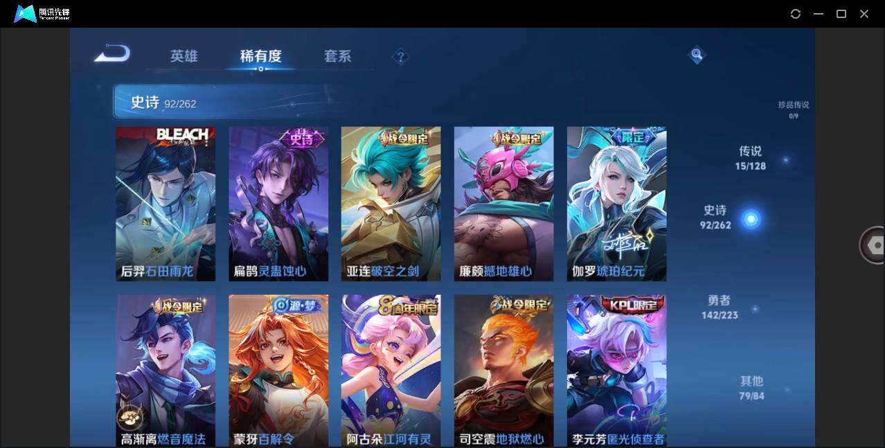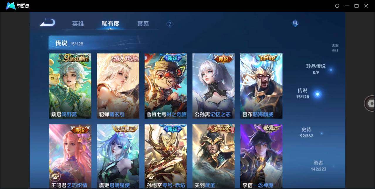 - PX_2080818-84 安卓QQ/最强王者/269皮肤/125英雄/3典藏/0珍品无双/0无双/1珍品传说/25传说/91史诗/9稀有英雄 【1 珍品传说】大耳狗之梦 瑶, 【3 典藏皮肤】鸣剑·曳影 李白,全息碎影 孙悟空,九霄神辉 花木兰, 【25 传说皮肤】胖达荣荣 梦奇,启明星使 虞姬,云霓雀翎 虞姬,时之祈愿 瑶,云鹰飞将 曜,补天 女娲,仲夏夜之梦 貂蝉,炽阳神光 镜,寅虎·瑞焰