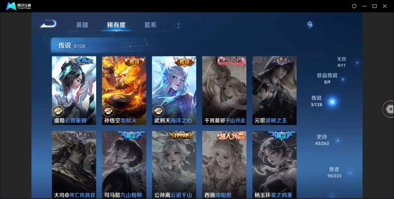 【传说皮肤】:虞姬云霓雀翎,孙悟空地狱火,武则天海洋之心