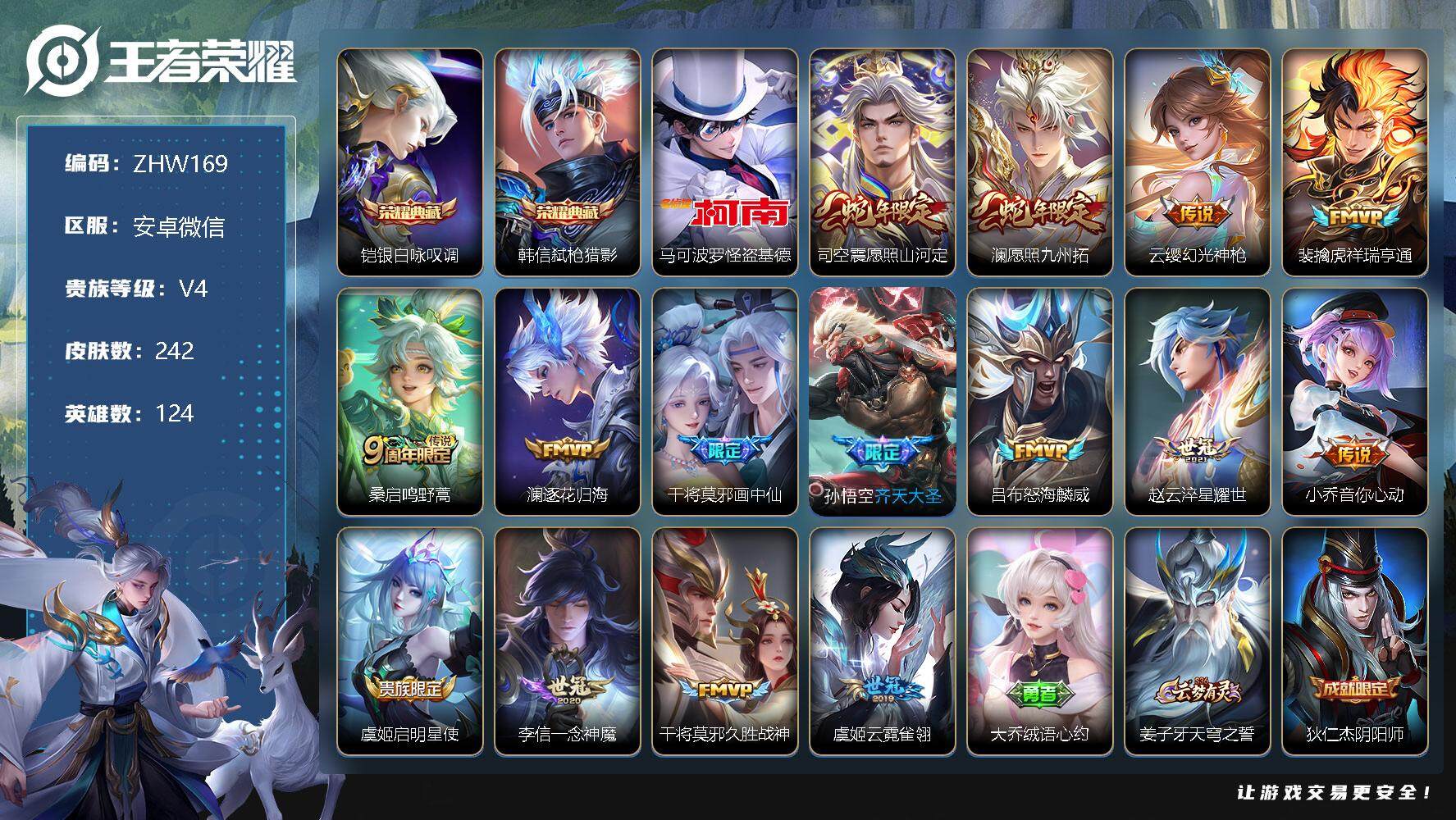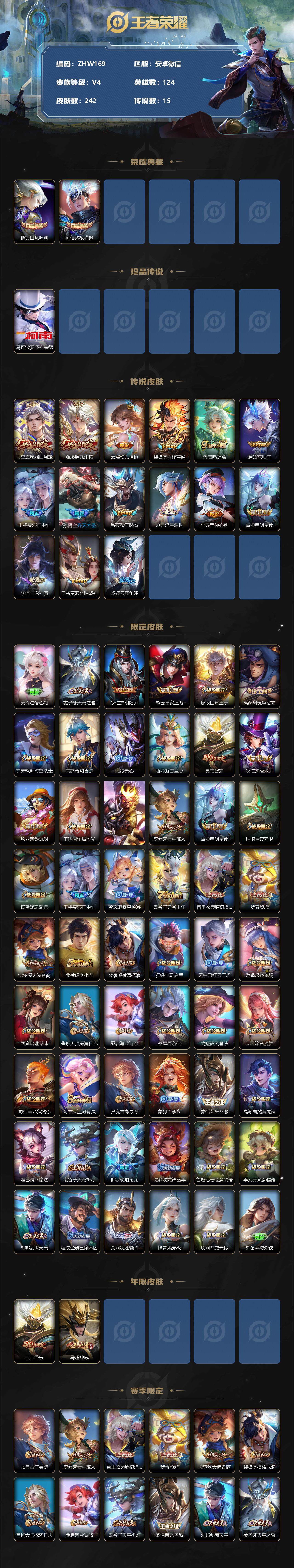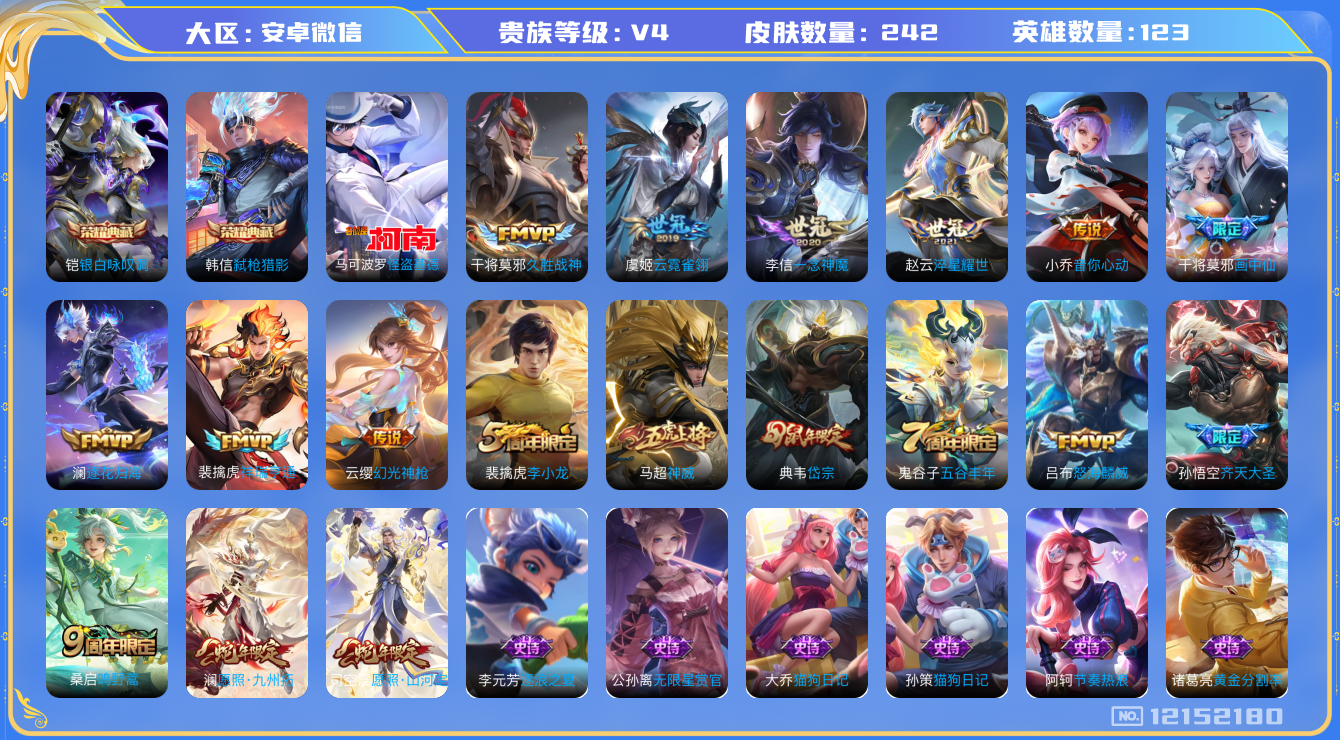 [12152180]【商品标题】:安卓WX-V4-永恒钻石IV段位-124英雄-242皮肤-2典藏-0珍品无双-0无双-1珍品传说-15传说-72史诗