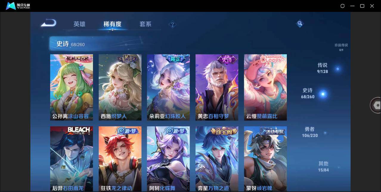 - [12138660]V9 3典藏 1珍品无双 1无双 2珍品传说 24传说 125英雄 361皮肤 可修改实名 优质装备:馥梦繁花,活力突击,九霄神辉(木兰典藏),银白咏叹调(倪克斯侍卫),真我赫兹(瑶)(瑶无双),黑崎一护,云鹰飞将(小将军),久胜战神,炽阳神光,末日机甲-孙尚香(绿蚂蚱),地狱火,仲夏夜之梦(大飞蛾),音你心动-小乔,地狱之眼,淬星耀世,超时空战士-狄仁杰,末日机甲-孙策,无双飞将,灼幽烈阳,妄想实况,鹤归松栖(云缨),惊梅引,诡秘之主,千山共赴,涂山容容 珍品传说:兔狲·蓬尾 珍宝阁皮:妄想食味,蔷薇恋人 限定皮:愿照·九州拓(澜年限),至尊宝,太华(伽罗年限),神威(电光马子),遇见飞天,诗剑行,五谷丰年,梁祝,御风骁将(吕布年限),天狼狩猎者,天狼溯光者,逐梦之音,天狼征服者,祈雪灵祝(雪兔子),天狼绘梦者,李小龙,永曜之星,真爱至上,纯白花嫁,引擎之心,青春决赛季,冰霜恋舞曲,乒乒小将,蜜橘之夏,神奇女侠,神器·万象笔 史诗皮:鸭鸭历险记-刘禅,器灵·浮梦炉,化蝶舞,灵蛊蚀心,星界战将,龙之律动,雪豹·霜爪,藏狐·褐绒,百相守梦-周瑜,茶境仙,涂山红红,东方月初,埋骨钱,百相守梦-黄忠,织梦人,紫霞仙子,苍穹之光,电玩小子(小书包),黄金分割率,特工魅影,千年之狐,永昼,匿光侦查者,鹤归松栖(赵怀真),真我赫兹(镜),浮梦罗烟,无限星赏官,匿光破解者,冰冠公主,青蛇,偶像歌手,白蛇,暗夜猫娘,龙骑士(小龙虾),末日机甲-吕布,猫狗日记-孙策,猫狗日记-大乔,乱世虎臣,节奏热浪,女仆咖啡,摇滚巨星,水果甜心,绅士熊喵,天才门将,星夜王子,心灵骇客,功夫厨神,德古拉伯爵,暗隐猎兽者,幽灵船长,鬼剑武藏,心灵战警,乐园奇幻夜,天秀·启明,舞动绿茵,地狱岩魂,繁星吟游(呼啦呼啦),缤纷独角兽,乘风破浪,逐浪之夏,月团寄思,水晶猎龙者,曙光守护者,箭羽风息,金属风暴,原初追逐者,圣诞狂欢,圣诞恋歌,鹰眼统帅,王者之锤,暗夜贵公子,魅力维加斯,黎明之约,未来纪元-赵云