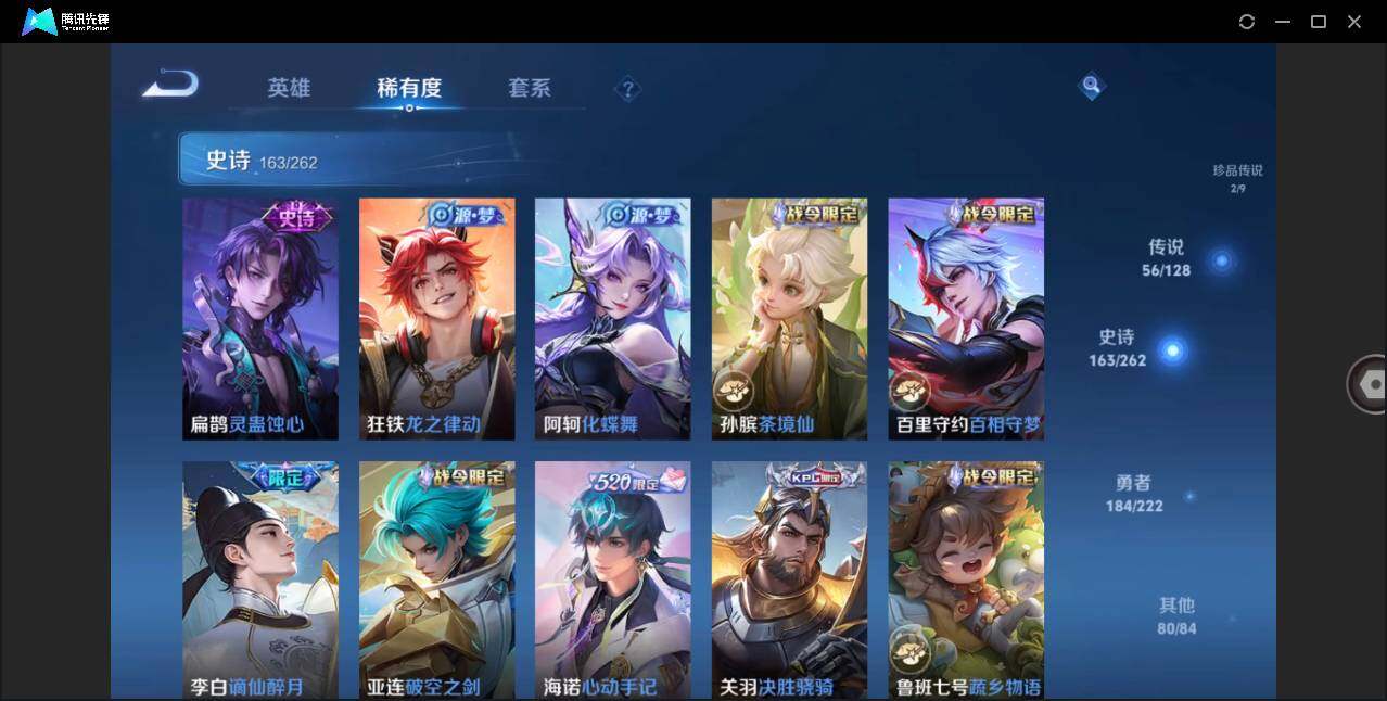 - [12224923]V7 13传说 123英雄 208皮肤 可修改实名 优质装备:零号·赤焰,淬星耀世,超时空战士-狄仁杰,无双飞将,遇见神鼓,澜逐花归海,琥珀纪元马超 传说皮:乘龙·问璇玑(孙尚香年限),貂蝉曦玄引,吕布曦玄引,落雪白狼 珍宝阁皮:妄想食味,女武神 限定皮:愿照·九州拓(澜年限),逐霄战戟,鸣野蒿,神威(电光马子),五谷丰年,游园惊梦,御风骁将(吕布年限),李小龙,猪悟能 史诗皮:化蝶舞,谪仙醉月,龙之律动,茶境仙,海诺心动手记,紫霞仙子,白龙吟,黄金分割率,江河有灵,百解令(蒙犽),冰冠公主,偶像歌手,龙骑士(小龙虾),末日机甲-吕布,乱世虎臣,修罗,水果甜心,暗隐猎兽者,鬼剑武藏,舞动绿茵,纤云弄巧,繁星吟游(呼啦呼啦),拒霜思,缤纷独角兽,乘风破浪,逐浪之夏,水晶猎龙者,曙光守护者,金属风暴,圣诞狂欢,圣诞恋歌,鹰眼统帅,无心,未来纪元-赵云