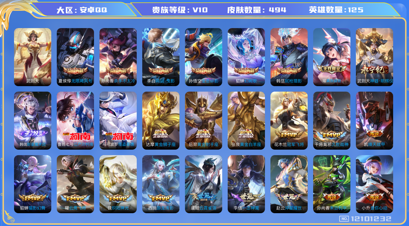 [12101232]中路32段/发育路30段【特价急出/详情看图】:安卓Q-V10-尊贵铂金III段位-125英雄-494皮肤-6典藏-3无双-2珍品传说-56传说-162史诗