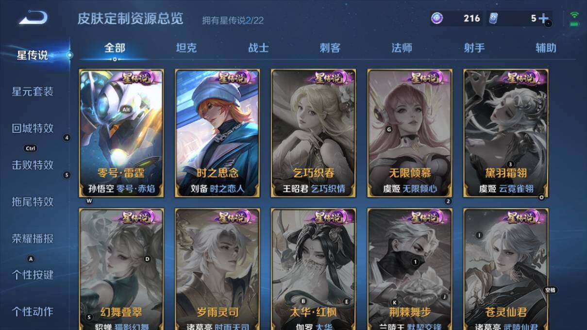 曜云鹰飞将,镜炽阳神光,李信一念神魔,刘备时之恋人,孙悟空零号·赤焰,王昭君乞巧织情,马超无双飞将,澜逐花归海,孙策乘龙·淬吴钩,赵云乘龙·铭钟鼎,孙尚香乘龙·问璇玑,典韦战鼓燎原,吕布曦玄引,嬴政玄雷天君,云缨幻光神枪