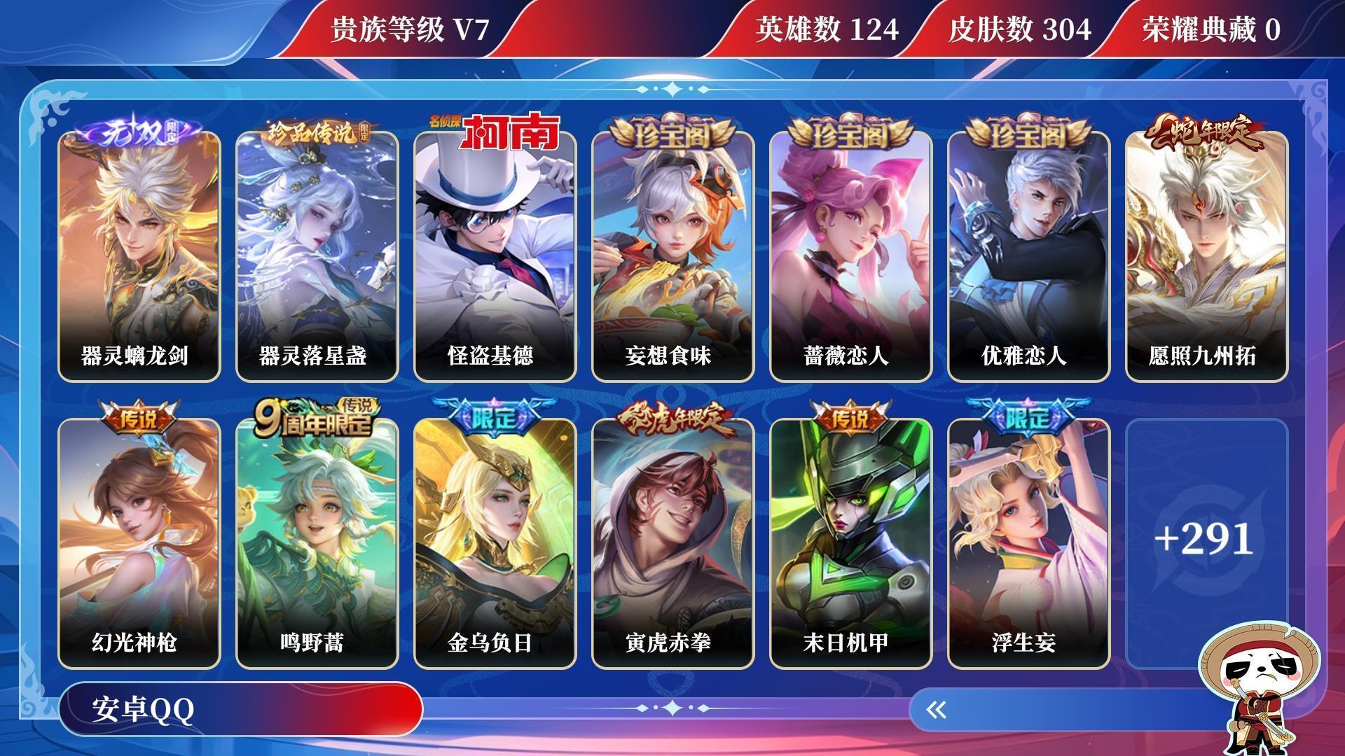 [9827313]贵族V7 无双1 珍品传说2 传说皮肤10 史诗皮肤99 皮肤数量304 皮肤价值:202680 英雄124 至圣王者