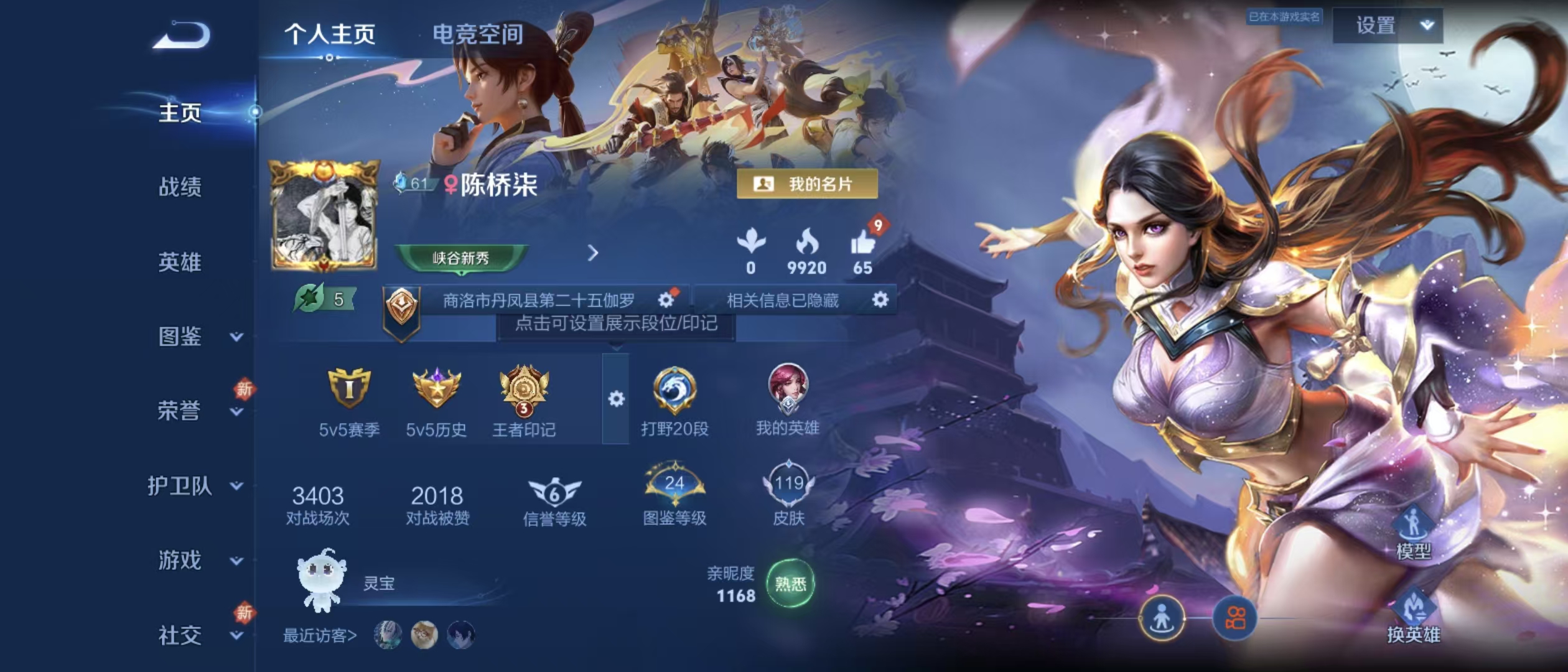 - [12075272]V8 2珍品传说 17传说 124英雄 218皮肤 可修改实名 优质装备:朽木白哉,黑崎一护,云鹰飞将(小将军),猫影幻舞,乞巧织情,超时空战士-狄仁杰,无双飞将,音你闪耀(rap皮),妄想实况 传说皮:典韦战鼓燎原,死亡执政官,九山相柳,云诺千山,幻光神枪 珍宝阁皮:妄想食味 限定皮:愿照·九州拓(澜年限),愿照·岁时盈(虞姬年限),愿照·山河定(司空震年限),逐霄战戟,凤求凰(白切鸡),魔法小厨娘,飞衡(韩信年限),山海·碧波行(瑶年限),遇见飞天,降魔,梁祝,天狼征服者,李小龙,大圣娶亲,时之奇旅-妲己 史诗皮:鸭鸭历险记-刘禅,苍鳞隐世,器灵·浮梦炉,狼魂孤将,化蝶舞,龙之律动,石田雨龙,百相守梦-周瑜,茶境仙,琥珀纪元伽罗,百相守梦-百里守约,星界特工,百相守梦-黄忠,织梦人,守夜人,紫霞仙子,黄金分割率,特工魅影,千年之狐,无限星赏官,青蛇,猫狗日记-孙策,乱世虎臣,摇滚巨星,水果甜心,功夫厨神,德古拉伯爵,暗隐猎兽者,鬼剑武藏,地狱岩魂,纤云弄巧,繁星吟游(呼啦呼啦),乘风破浪,逐浪之夏,曙光守护者,热力回旋,箭羽风息,原初追逐者,圣诞狂欢,圣诞恋歌,鹰眼统帅,黎明之约,赏金猎手