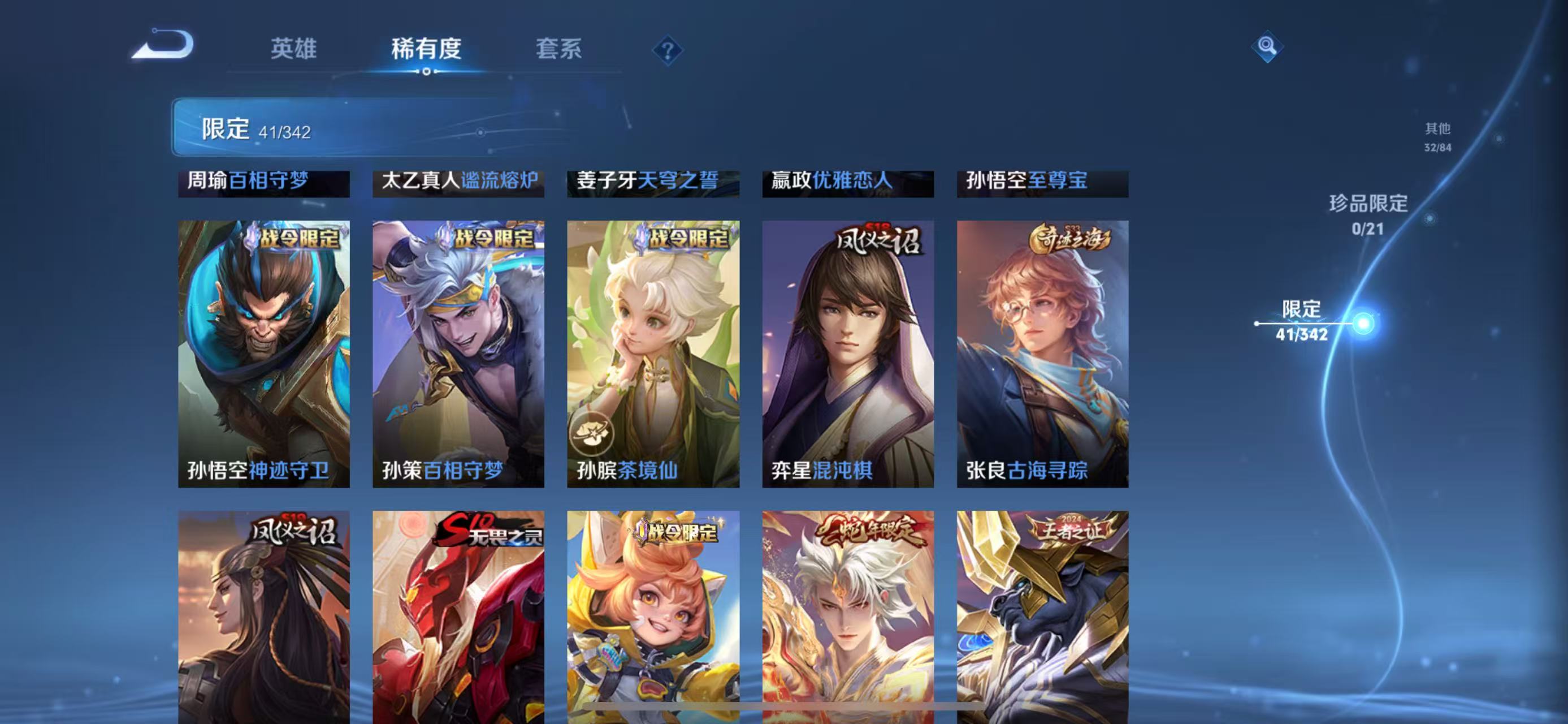 曹操烛龙,典韦穷奇,狂铁御狮,米莱狄御霄,明世隐疑决卦,老夫子醍醐杖,鬼谷子原初探秘者,狄仁杰万华元夜,程咬金演武夺筹,钟馗驱傩正仪,弈星混沌棋,张良古海寻踪,镜青焰无极