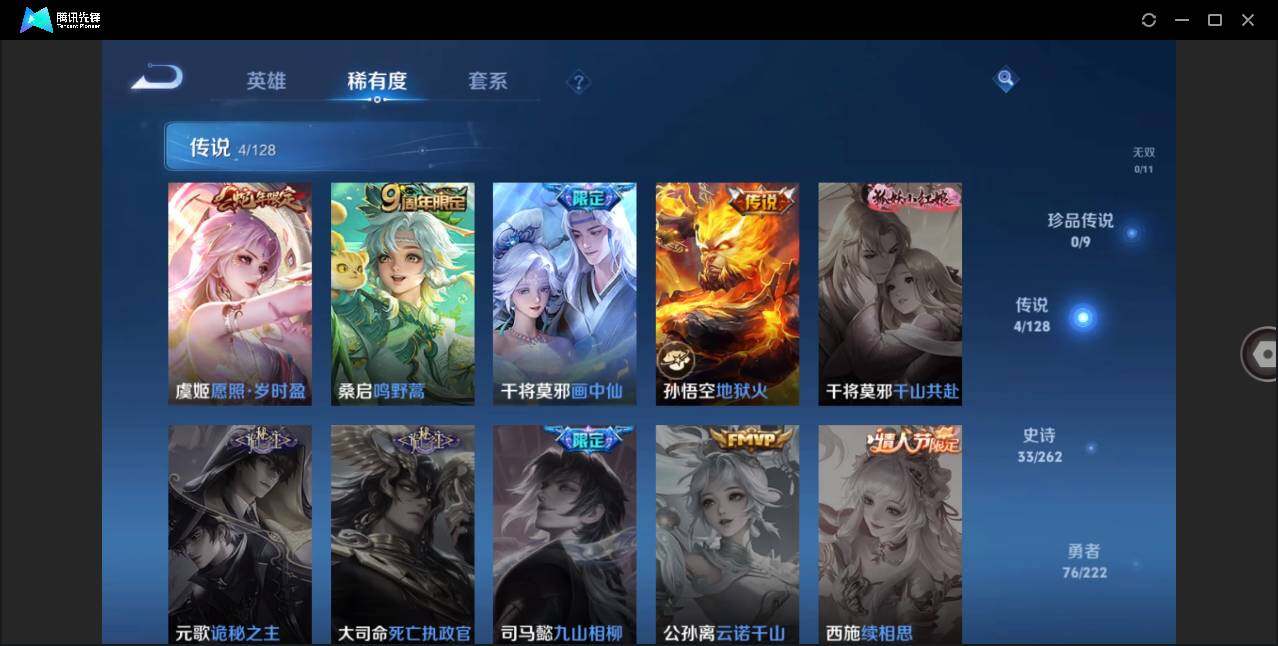 - [11989347]V7 4传说 123英雄 113皮肤 可修改实名 优质装备:猫影幻舞,挚爱之约,挚爱花嫁 限定皮:逐霄战戟,时之彼端,匿光决锋者,五谷丰年,李小龙,默契交锋-花木兰,时之祈愿-瑶(瑶传限) 史诗皮:遇见神鹿,黄金分割率,江河有灵,魅语,青蛇,末日机甲-吕布,女仆咖啡,水果甜心,时之奇旅-安琪拉,德古拉伯爵,鬼剑武藏,舞动绿茵,纤云弄巧,缤纷独角兽,圣诞恋歌,鹰眼统帅,魅力维加斯