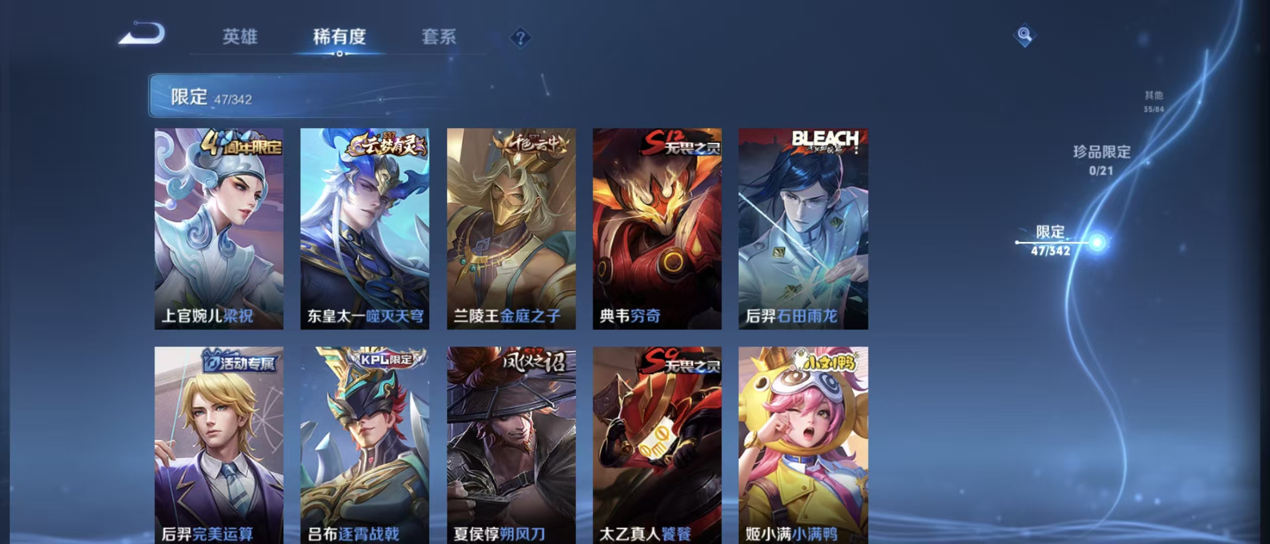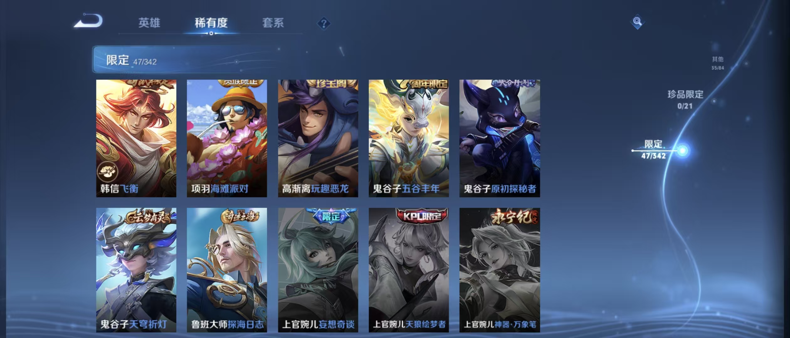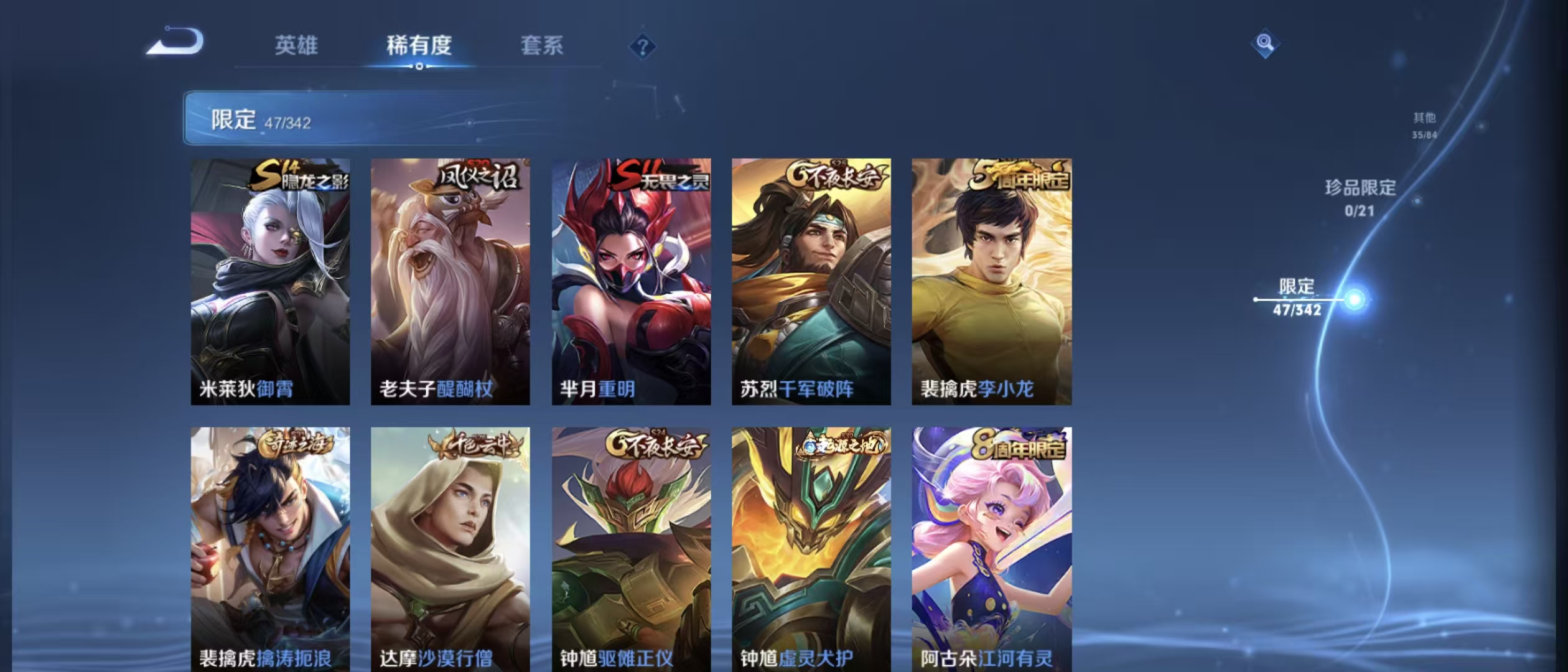 - [11651980]V8 1典藏 10传说 126英雄 232皮肤 典藏英雄武则天 可修改实名 优质装备:全息碎影(猴子典藏),冠军飞将,久胜战神,云霓雀翎,地狱火,海洋之心 传说皮:乘龙·铭钟鼎(赵云年限) 珍宝阁皮:女武神 限定皮:至尊宝,凤求凰(白切鸡),武陵仙君(小桃花),神威(电光马子),遇见飞天,五谷丰年,青龙志(铠年限),冰锋战神,游园惊梦,天狼狩猎者,李小龙,逐梦之光,如梦令-后羿,一生所爱,大圣娶亲,天魔缭乱,青春决赛季,冰霜恋舞曲,蜜橘之夏 史诗皮:赞萌露比,龙之律动,石田雨龙,守夜人,紫霞仙子,苍穹之光,白龙吟,黄金分割率,特工魅影,千年之狐,魅语,冰冠公主,偶像歌手,晚萤,猫狗日记-孙策,时之恋人-孙尚香,乱世虎臣,修罗,女仆咖啡,摇滚巨星,水果甜心,天才门将,星夜王子,功夫厨神,德古拉伯爵,暗隐猎兽者,幽灵船长,心灵战警,舞动绿茵,纤云弄巧,繁星吟游(呼啦呼啦),乘风破浪,逐浪之夏,水晶猎龙者,原初追逐者,圣诞狂欢,圣诞恋歌,鹰眼统帅,暗夜贵公子,魅力维加斯