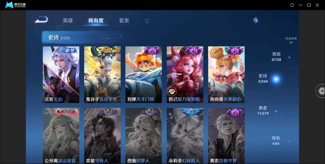 - [12296506]V8 2典藏 5珍品传说 24传说 125英雄 369皮肤 可修改实名 女号 优质装备:弑枪猎影(韩信典藏),神鉴启示录,江户川柯南,怪盗基德,大耳狗之梦,朽木白哉,黄金射手座,云鹰飞将(小将军),云霓雀翎,末日机甲-孙尚香(绿蚂蚱),地狱火,仲夏夜之梦(大飞蛾),海洋之心,地狱之眼,飞鸢探春,时之恋人-刘备(电焊工),超时空战士-狄仁杰,花朝如约(花篮子),炽翼辉光(娃娃菜牛角包),霜月吟,涂山容容 珍品传说:时之奇旅-孙策 传说皮:乘龙·问璇玑(孙尚香年限),幻光神枪 珍宝阁皮:优雅恋人,蔷薇恋人,女武神 限定皮:愿照·岁时盈(虞姬年限),愿照·山河定(司空震年限),愿照·众生和(妲己年限),逐霄战戟,陌上桑,鸣野蒿,夏侯惇霜北刀,傲雪梅枪,时雨天司(水龙头),神威(电光马子),遇见飞天,高山流水,五谷丰年,天狼溯光者,李小龙,乒乒小将,无尽星芒,神器·万象笔,梦圆繁星 史诗皮:鸭鸭历险记-刘禅,器灵·浮梦炉,化蝶舞,灵蛊蚀心,谪仙醉月,龙之律动,石田雨龙,百相守梦-周瑜,茶境仙,破空之剑,蒙犽顽岩魄,埋骨钱,芈月浮光幕影,琥珀纪元伽罗,决胜骁骑,蔬乡物语(鲁班七号),百相守梦-百里守约,百相守梦-黄忠,紫霞仙子,苍穹之光,电玩小子(小书包),黄金分割率,特工魅影,江河有灵,匿光侦查者,末日机甲-莱西奥,真我赫兹(百里守约),魅语,百解令(蒙犽),高渐离燃音魔法,冰冠公主,偶像歌手,白蛇,电玩·爆裂旋风,末日机甲-吕布,猫狗日记-孙策,猫狗日记-大乔,时之恋人-孙尚香,乱世虎臣,节奏热浪,女仆咖啡,摇滚巨星,水果甜心,绅士熊喵,天才门将,星夜王子,心灵骇客,功夫厨神,德古拉伯爵,暗隐猎兽者,幽灵船长,鬼剑武藏,心灵战警,天秀·启明,舞动绿茵,地狱岩魂,诗语江南,纤云弄巧,繁星吟游(呼啦呼啦),拒霜思,缤纷独角兽,乘风破浪,逐浪之夏,月团寄思,水晶猎龙者,曙光守护者,箭羽风息,金属风暴,圣诞狂欢,圣诞恋歌,鹰眼统帅,暗夜贵公子,魅力维加斯,雪上飞焰,无心,未来纪元-赵云