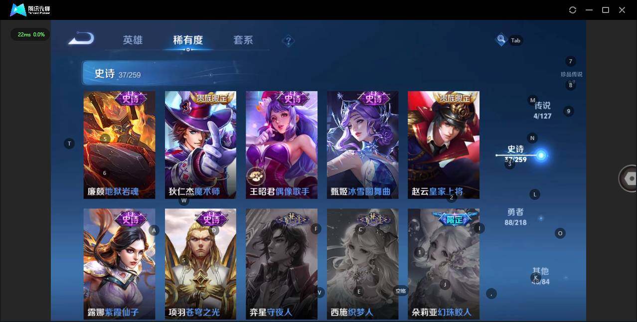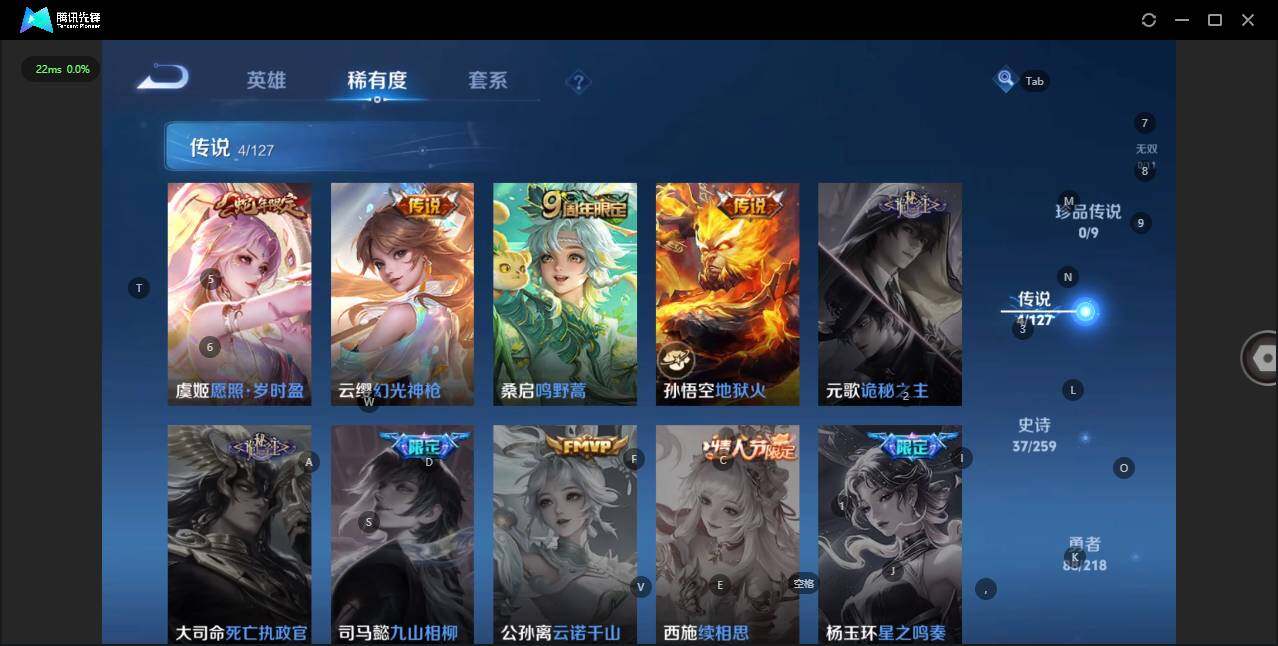 - [11473297]V7 1珍品传说 10传说 126英雄 294皮肤 典藏英雄武则天 可修改实名 优质装备:江户川柯南,黄金狮子座,黄金射手座,炽阳神光,一念神魔,末日机甲-孙尚香(绿蚂蚱),仲夏夜之梦(大飞蛾),乞巧织情,末日机甲-孙策 珍宝阁皮:胡桃夹子 限定皮:愿照·九州拓(澜年限),鸣野蒿,至尊宝,五谷丰年,游园惊梦,梁祝,李小龙,百木心枪 史诗皮:器灵·浮梦炉,灵蛊蚀心,星界战将,茶境仙,破空之剑,战舞者,蒙犽顽岩魄,琥珀纪元伽罗,紫霞仙子,白龙吟,黄金分割率,特工魅影,千年之狐,江河有灵,百解令(蒙犽),高渐离燃音魔法,无限星赏官,冰冠公主,偶像歌手,白蛇,末日机甲-吕布,猫狗日记-孙策,时之恋人-孙尚香,乱世虎臣,节奏热浪,修罗,女仆咖啡,摇滚巨星,水果甜心,绅士熊喵,天才门将,星夜王子,功夫厨神,暗隐猎兽者,幽灵船长,鬼剑武藏,心灵战警,乐园奇幻夜,天秀·启明,舞动绿茵,地狱岩魂,纤云弄巧,繁星吟游(呼啦呼啦),缤纷独角兽,乘风破浪,逐浪之夏,水晶猎龙者,曙光守护者,箭羽风息,金属风暴,原初追逐者,圣诞狂欢,圣诞恋歌,鹰眼统帅,魅力维加斯,黎明之约,未来纪元-赵云