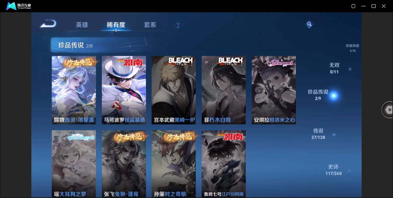 - [11880215]V6 1珍品传说 4传说 123英雄 228皮肤 可修改实名 优质装备:朽木白哉,末日机甲-孙尚香(绿蚂蚱),仲夏夜之梦(大飞蛾),澜逐花归海,涂山容容 珍宝阁皮:妄想食味 限定皮:逐霄战戟,鸣野蒿,至尊宝,遇见飞天,冰锋战神,游园惊梦,梁祝,李小龙 史诗皮:鸭鸭历险记-刘禅,灵蛊蚀心,星界战将,谪仙醉月,百相守梦-周瑜,破空之剑,百相守梦-百里守约,百相守梦-黄忠,紫霞仙子,白龙吟,黄金分割率,特工魅影,千年之狐,江河有灵,魅语,百解令(蒙犽),冰冠公主,龙骑士(小龙虾),节奏热浪,修罗,女仆咖啡,水果甜心,天才门将,星夜王子,心灵骇客,功夫厨神,德古拉伯爵,暗隐猎兽者,幽灵船长,鬼剑武藏,心灵战警,天秀·启明,舞动绿茵,纤云弄巧,拒霜思,缤纷独角兽,乘风破浪,逐浪之夏,水晶猎龙者,曙光守护者,热力回旋,箭羽风息,原初追逐者,圣诞狂欢,圣诞恋歌,鹰眼统帅,暗夜贵公子,魅力维加斯,黎明之约