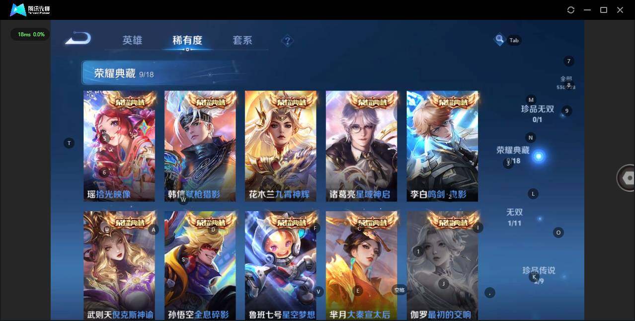 【荣耀典藏】:武则天英雄,孙悟空全息碎影,武则天倪克斯神谕,鲁班七号星空梦想,芈月大秦宣太后,李白鸣剑曳影,诸葛亮星域神启,花木兰九霄神辉,韩信弑枪猎影,瑶拾光映像
