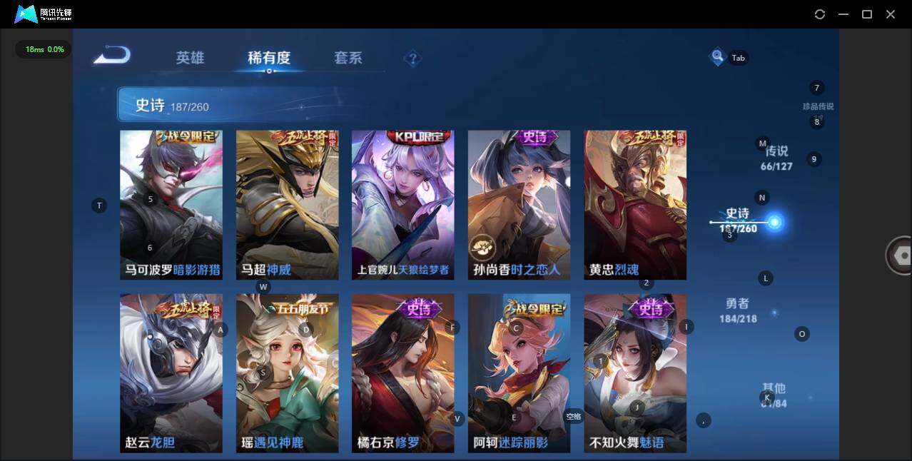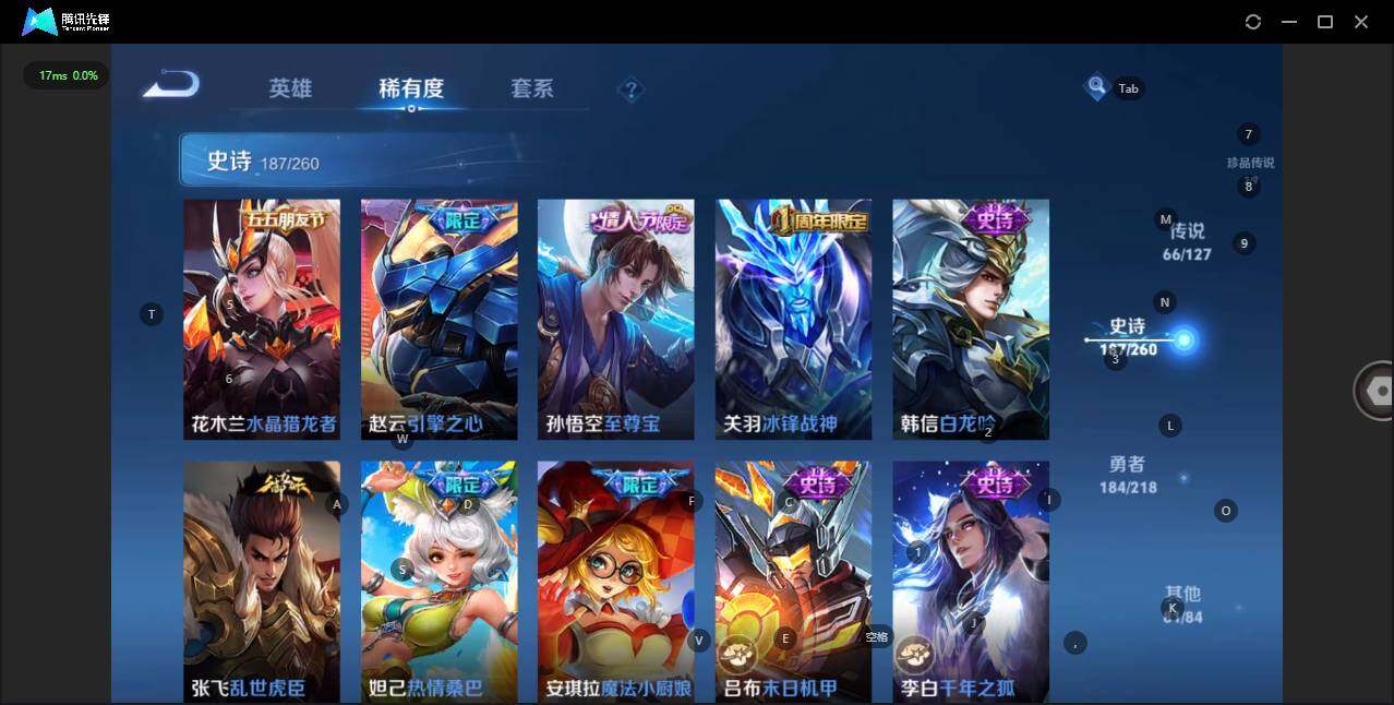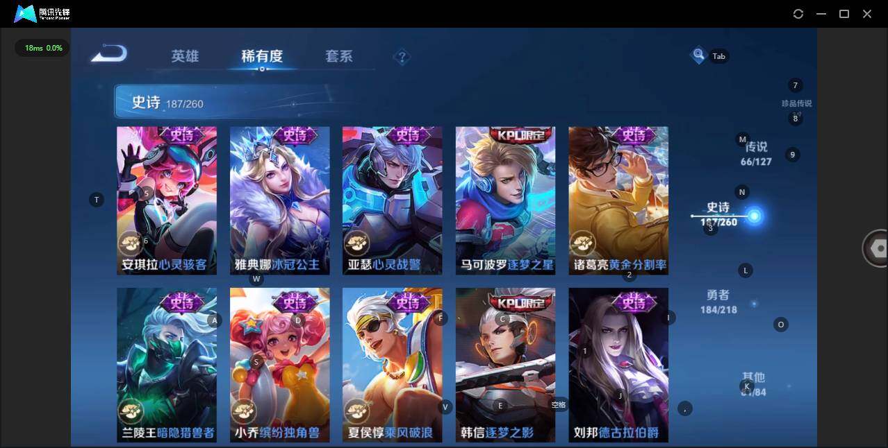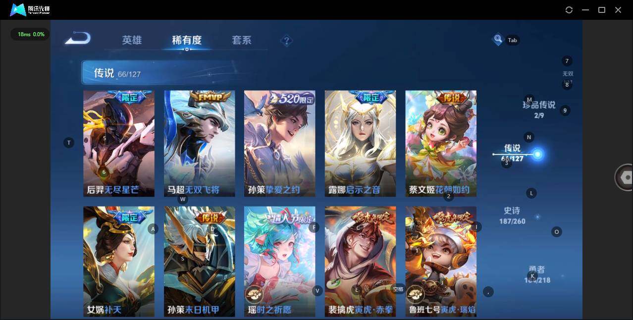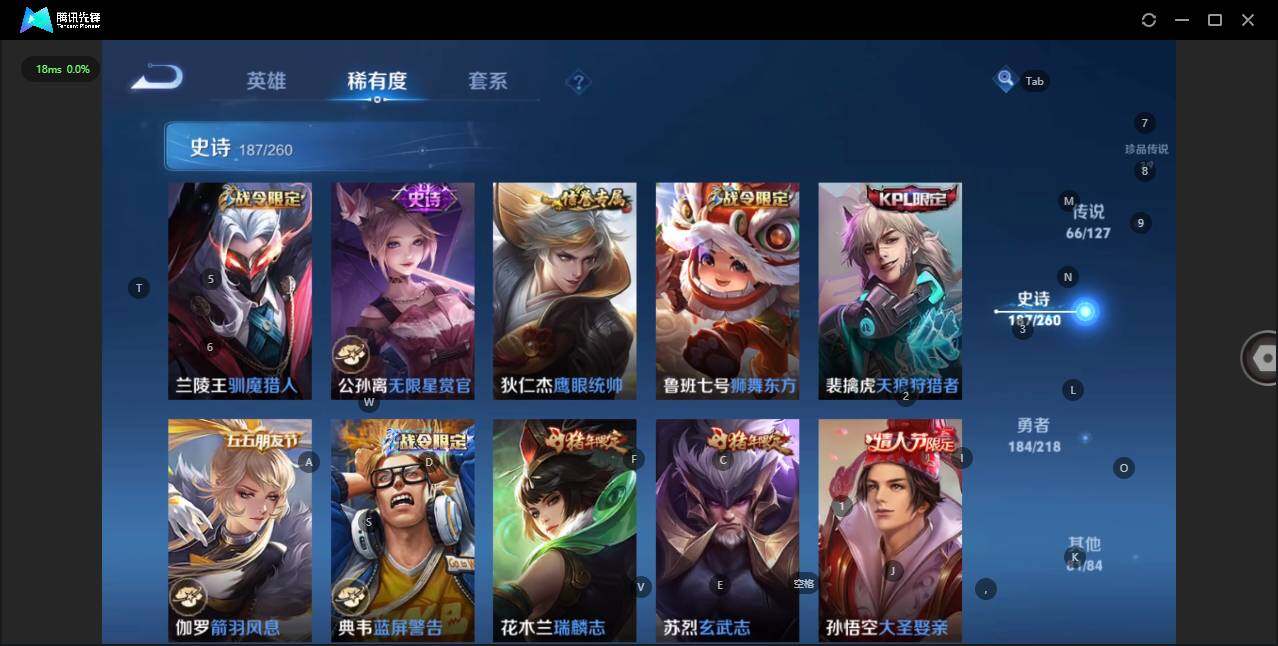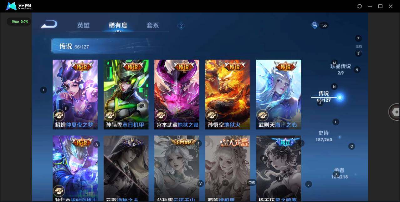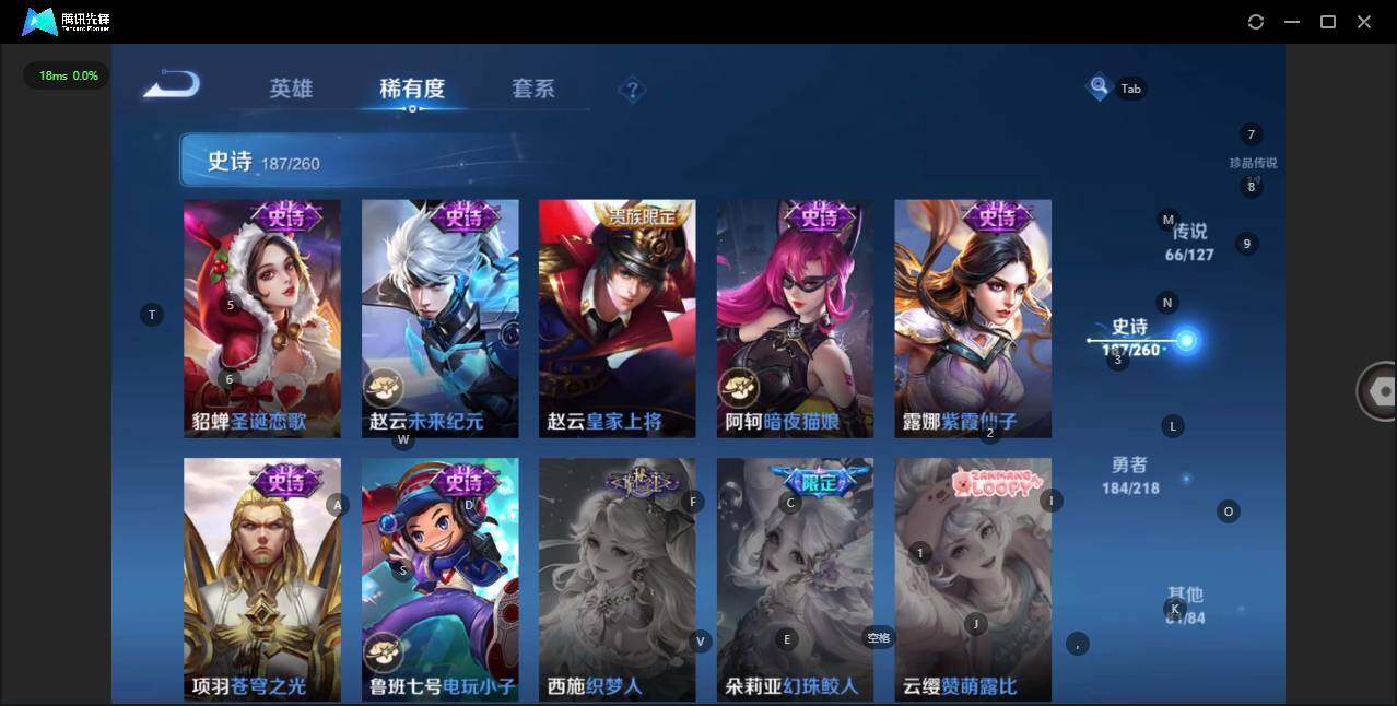 - [12116553]V7 1珍品传说 5传说 123英雄 188皮肤 可修改实名 优质装备:怪盗基德,超时空战士-狄仁杰,涂山容容 传说皮:幻光神枪 珍宝阁皮:万物之道,蔷薇恋人 限定皮:愿照·岁时盈(虞姬年限),鸣野蒿,瑞麟志(木兰年限),五谷丰年,游园惊梦,李小龙,大圣娶亲,深海之息(深海大菠萝) 史诗皮:器灵·浮梦炉,龙之律动,琥珀纪元伽罗,百相守梦-黄忠,蒙犽顽岩魄,怒海争锋,织梦人,紫霞仙子,电玩小子(小书包),白龙吟,黄金分割率,特工魅影,千年之狐,江河有灵,雪夜绮愿(周瑜),百解令(蒙犽),高渐离燃音魔法,蒙恬荣光圣徽,电玩·爆裂旋风,末日机甲-吕布,猫狗日记-大乔,乱世虎臣,节奏热浪,修罗,摇滚巨星,水果甜心,星夜王子,德古拉伯爵,暗隐猎兽者,幽灵船长,鬼剑武藏,心灵战警,纤云弄巧,缤纷独角兽,乘风破浪,逐浪之夏,水晶猎龙者,曙光守护者,箭羽风息,金属风暴,圣诞恋歌,鹰眼统帅,魅力维加斯,未来纪元-赵云