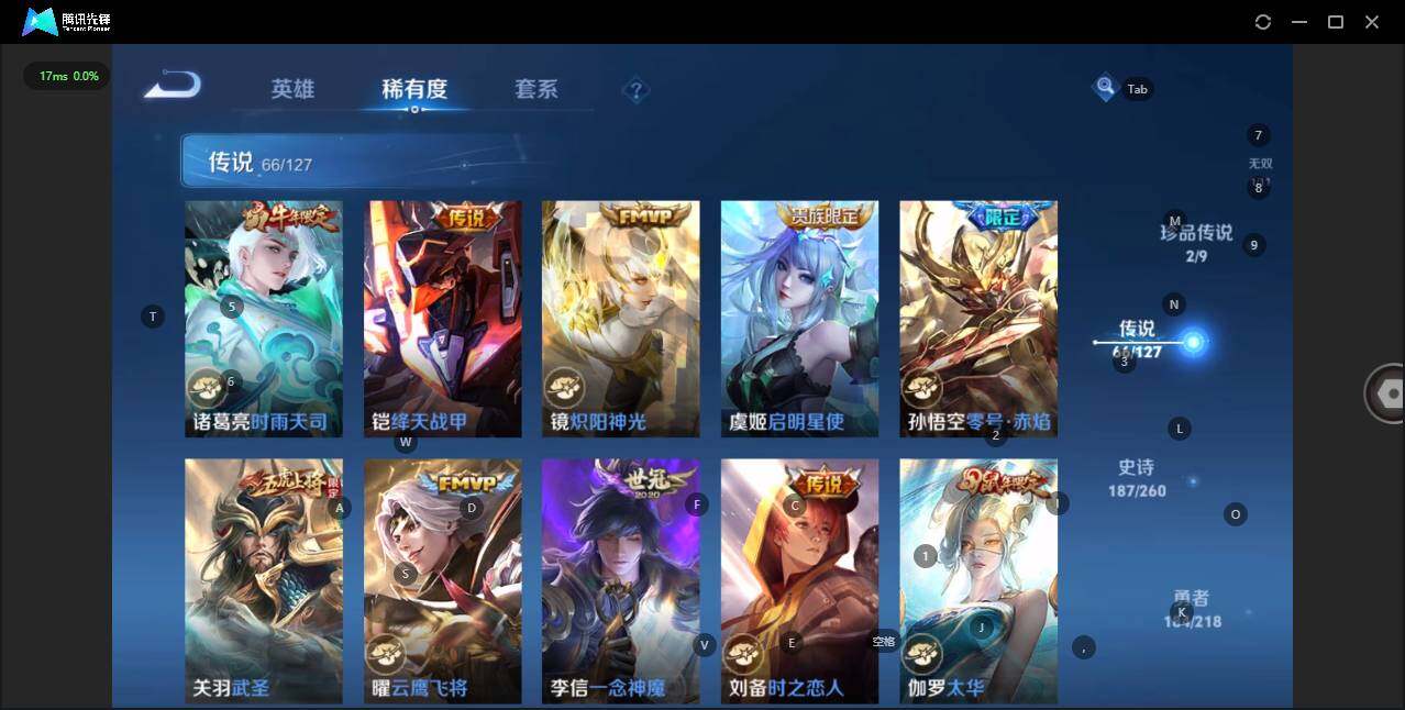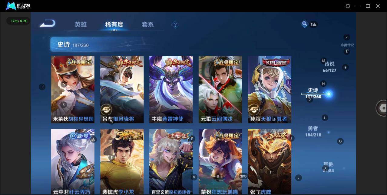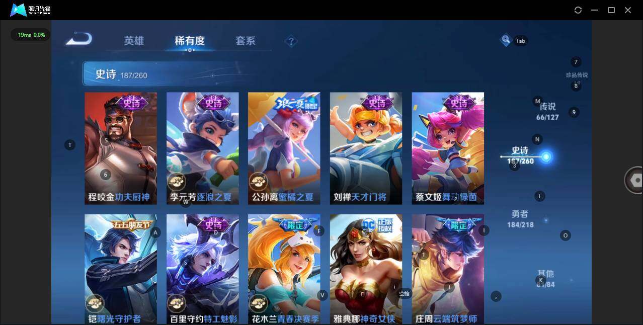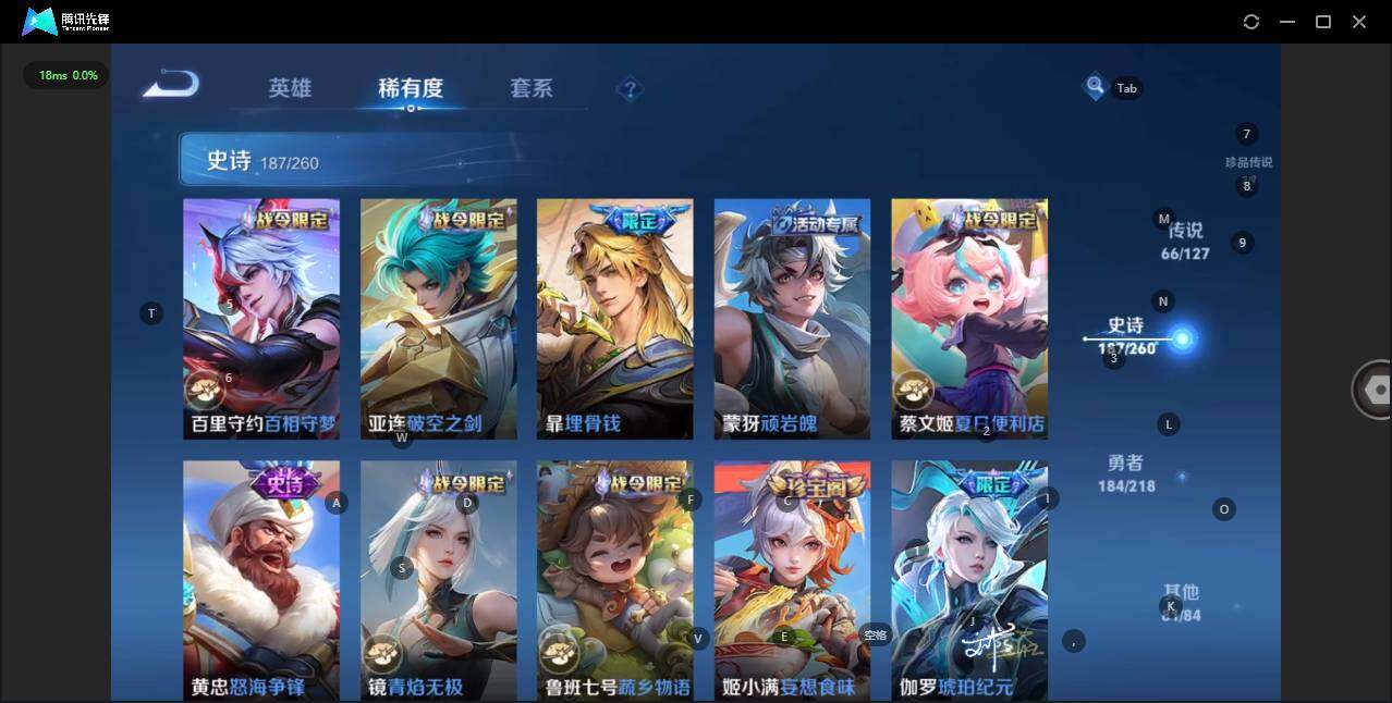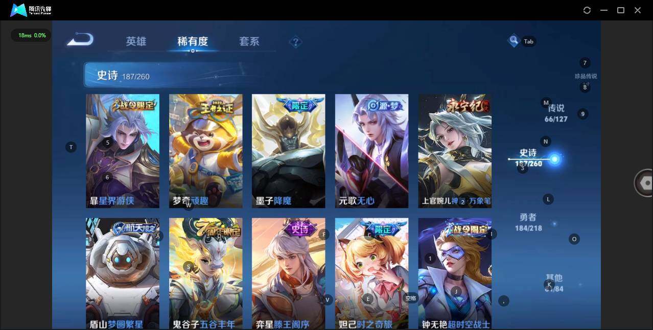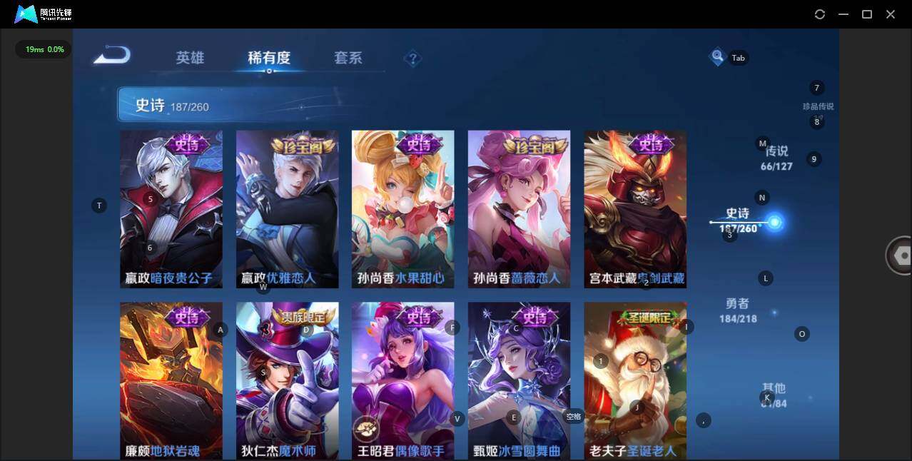 - [12116553]V7 1珍品传说 5传说 123英雄 188皮肤 可修改实名 优质装备:怪盗基德,超时空战士-狄仁杰,涂山容容 传说皮:幻光神枪 珍宝阁皮:万物之道,蔷薇恋人 限定皮:愿照·岁时盈(虞姬年限),鸣野蒿,瑞麟志(木兰年限),五谷丰年,游园惊梦,李小龙,大圣娶亲,深海之息(深海大菠萝) 史诗皮:器灵·浮梦炉,龙之律动,琥珀纪元伽罗,百相守梦-黄忠,蒙犽顽岩魄,怒海争锋,织梦人,紫霞仙子,电玩小子(小书包),白龙吟,黄金分割率,特工魅影,千年之狐,江河有灵,雪夜绮愿(周瑜),百解令(蒙犽),高渐离燃音魔法,蒙恬荣光圣徽,电玩·爆裂旋风,末日机甲-吕布,猫狗日记-大乔,乱世虎臣,节奏热浪,修罗,摇滚巨星,水果甜心,星夜王子,德古拉伯爵,暗隐猎兽者,幽灵船长,鬼剑武藏,心灵战警,纤云弄巧,缤纷独角兽,乘风破浪,逐浪之夏,水晶猎龙者,曙光守护者,箭羽风息,金属风暴,圣诞恋歌,鹰眼统帅,魅力维加斯,未来纪元-赵云