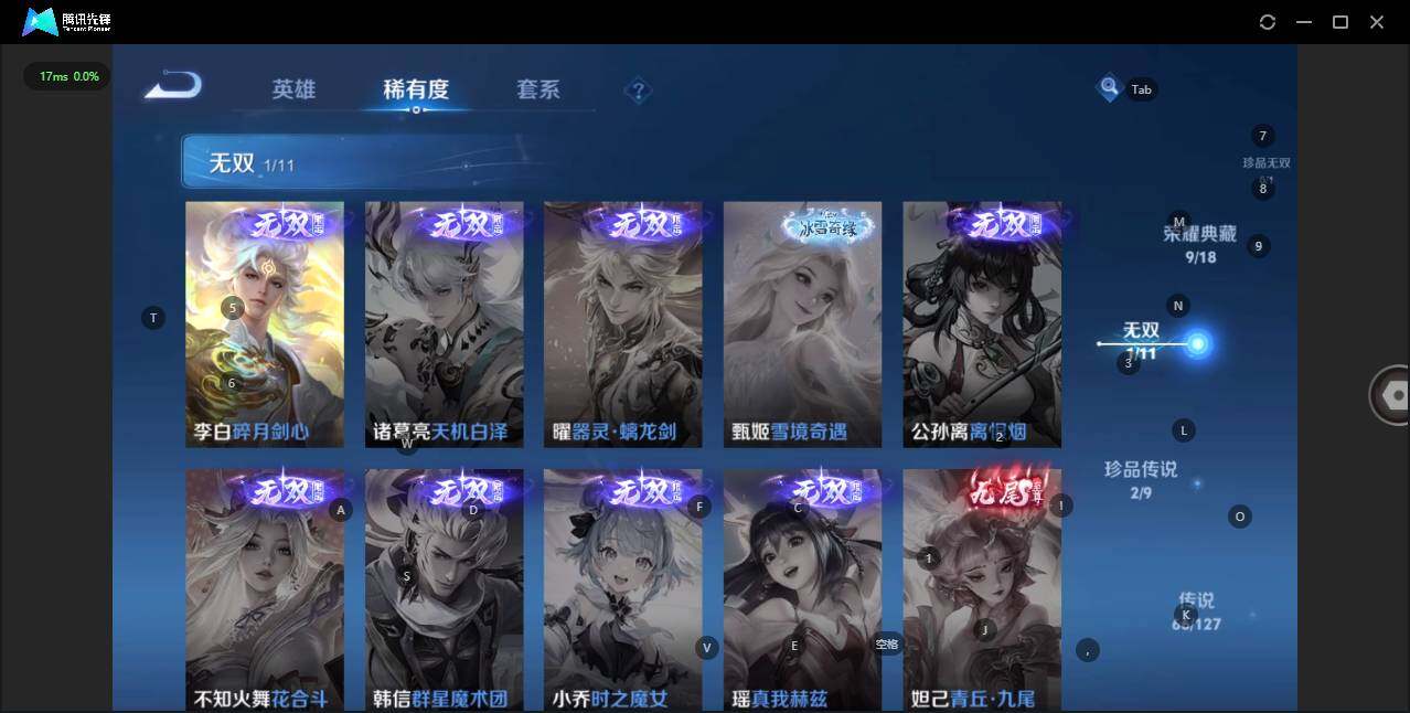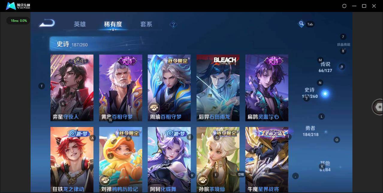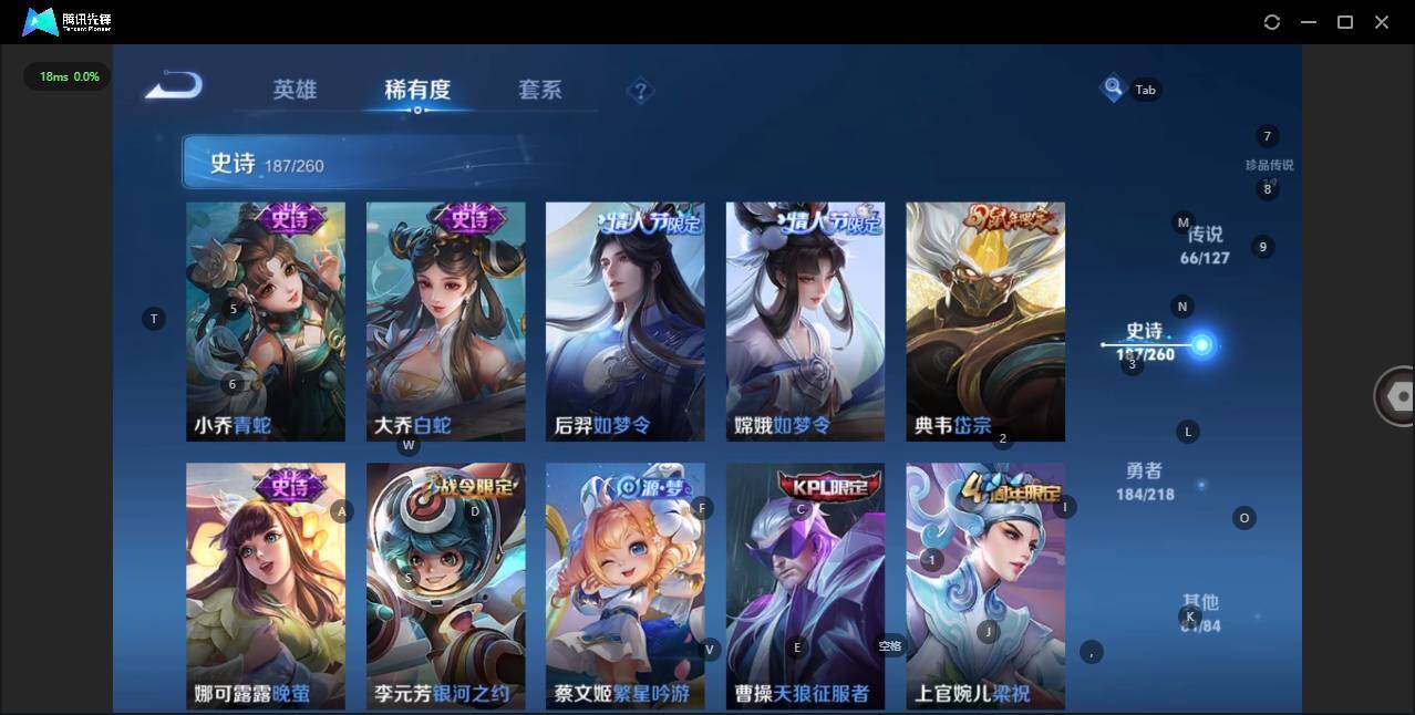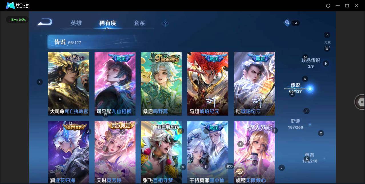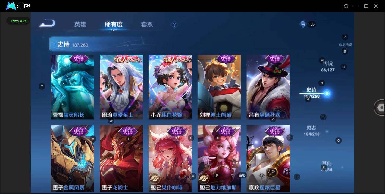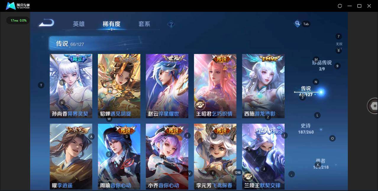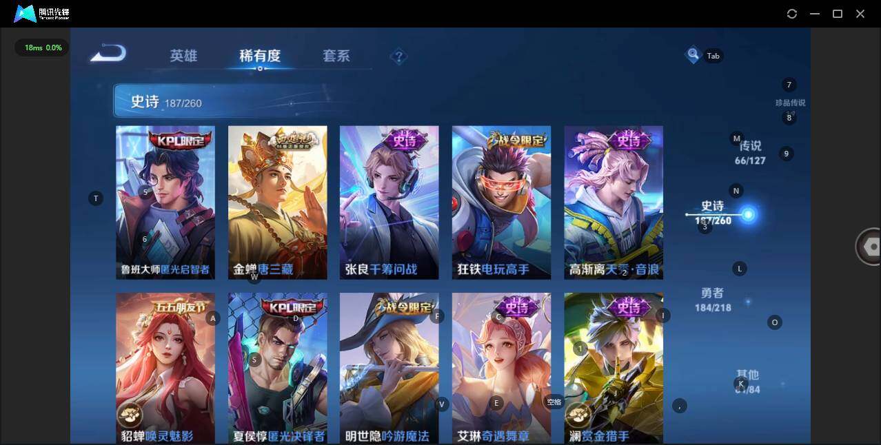 - [12116553]V7 1珍品传说 5传说 123英雄 188皮肤 可修改实名 优质装备:怪盗基德,超时空战士-狄仁杰,涂山容容 传说皮:幻光神枪 珍宝阁皮:万物之道,蔷薇恋人 限定皮:愿照·岁时盈(虞姬年限),鸣野蒿,瑞麟志(木兰年限),五谷丰年,游园惊梦,李小龙,大圣娶亲,深海之息(深海大菠萝) 史诗皮:器灵·浮梦炉,龙之律动,琥珀纪元伽罗,百相守梦-黄忠,蒙犽顽岩魄,怒海争锋,织梦人,紫霞仙子,电玩小子(小书包),白龙吟,黄金分割率,特工魅影,千年之狐,江河有灵,雪夜绮愿(周瑜),百解令(蒙犽),高渐离燃音魔法,蒙恬荣光圣徽,电玩·爆裂旋风,末日机甲-吕布,猫狗日记-大乔,乱世虎臣,节奏热浪,修罗,摇滚巨星,水果甜心,星夜王子,德古拉伯爵,暗隐猎兽者,幽灵船长,鬼剑武藏,心灵战警,纤云弄巧,缤纷独角兽,乘风破浪,逐浪之夏,水晶猎龙者,曙光守护者,箭羽风息,金属风暴,圣诞恋歌,鹰眼统帅,魅力维加斯,未来纪元-赵云