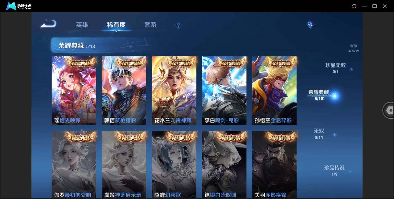 裴擒虎李小龙,貂蝉逐梦之音,诸葛亮时雨天司,黄忠烈魂,张飞虎魄,马超神威,韩信飞衡,上官婉儿天狼绘梦者,马可波罗逐梦之星,韩信逐梦之影,铠青龙志,百里守约朱雀志,王昭君凤凰于飞,孙悟空大圣娶亲,露娜一生所爱,后羿如梦令,孙悟空至尊宝,花木兰青春决赛季,赵云引擎之心,孙悟空美猴王,孙尚香异界灵契,孙悟空孙行者,韩信傲雪梅枪,赵云百木心枪,王昭君星穹之声,不知火舞绯月行,上官婉儿神器·万象笔,盾山梦圆繁星,墨子降魔,李白诗剑行,瑶山海·碧波行,西施至美·乘鲤谣,甄姬至美·化雀舞,桑启鸣野蒿,艾琳陌上桑,王昭君映山客,澜愿照·九州拓,蔡文姬愿照·福禄聚,虞姬愿照·岁时盈