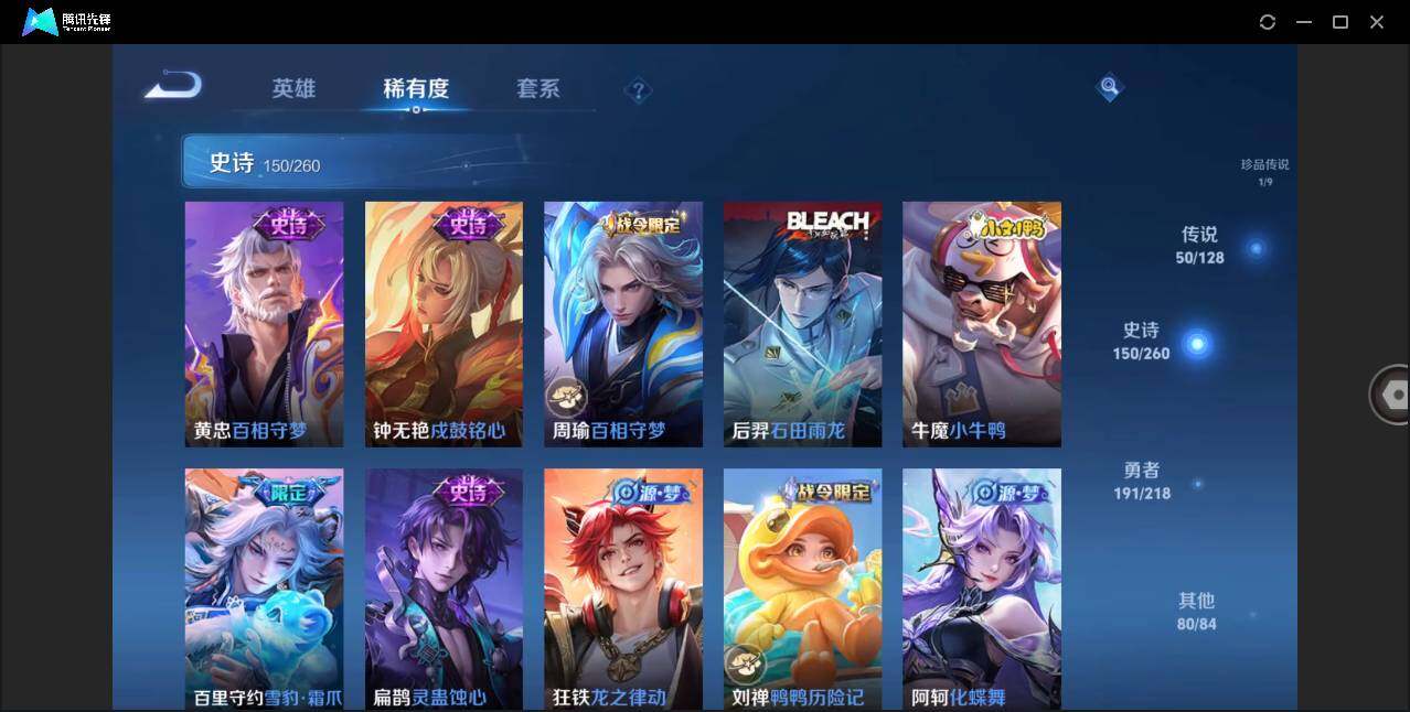 - [11999305]V9 4典藏 26传说 124英雄 301皮肤 可修改实名 优质装备:无限飓风号(高达),活力突击,鸣剑·曳影,全息碎影(猴子典藏),黄金狮子座,云鹰飞将(小将军),猫影幻舞,久胜战神,一念神魔,云霓雀翎,末日机甲-孙尚香(绿蚂蚱),仲夏夜之梦(大飞蛾),零号·赤焰,地狱之眼,飞鸢探春,李逍遥,时之恋人-刘备(电焊工),无双飞将,山海·炽霜斩(李信年限),山海·琳琅生(小乔年限),山海·苍雷引(电光曜子) 珍宝阁皮:蔷薇恋人,玩趣恶龙 限定皮:逐霄战戟,陌上桑,鸣野蒿,至尊宝,白虎志(电光耗子),武陵仙君(小桃花),时雨天司(水龙头),神威(电光马子),山海·碧波行(瑶年限),高山流水,诗剑行,齐天大圣,五谷丰年,冰锋战神,天狼运算者,游园惊梦,御风骁将(吕布年限),龙胆,逐梦之星,烈魂,天狼溯光者,奔雷神使(牛魔年限),祈雪灵祝(雪兔子),天狼绘梦者,李小龙,逐梦之光,永曜之星,辉光之辰,奇迹圣诞,神奇女侠,山海·玄木吟(马可年限) 史诗皮:星界战将,谪仙醉月,石田雨龙,破空之剑,蒙犽顽岩魄,遇见神鹿,紫霞仙子,苍穹之光,电玩小子(小书包),黄金分割率,江河有灵,真我赫兹(百里守约),魅语,百解令(蒙犽),蒙恬荣光圣徽,无限星赏官,冰冠公主,偶像歌手,白蛇,晚萤,电玩·爆裂旋风,龙骑士(小龙虾),末日机甲-吕布,猫狗日记-孙策,乱世虎臣,节奏热浪,修罗,女仆咖啡,摇滚巨星,水果甜心,绅士熊喵,星夜王子,心灵骇客,功夫厨神,德古拉伯爵,暗隐猎兽者,幽灵船长,鬼剑武藏,心灵战警,地狱岩魂,纤云弄巧,繁星吟游(呼啦呼啦),拒霜思,缤纷独角兽,乘风破浪,逐浪之夏,水晶猎龙者,曙光守护者,箭羽风息,金属风暴,原初追逐者,圣诞狂欢,圣诞恋歌,鹰眼统帅,魅力维加斯,无心,未来纪元-赵云