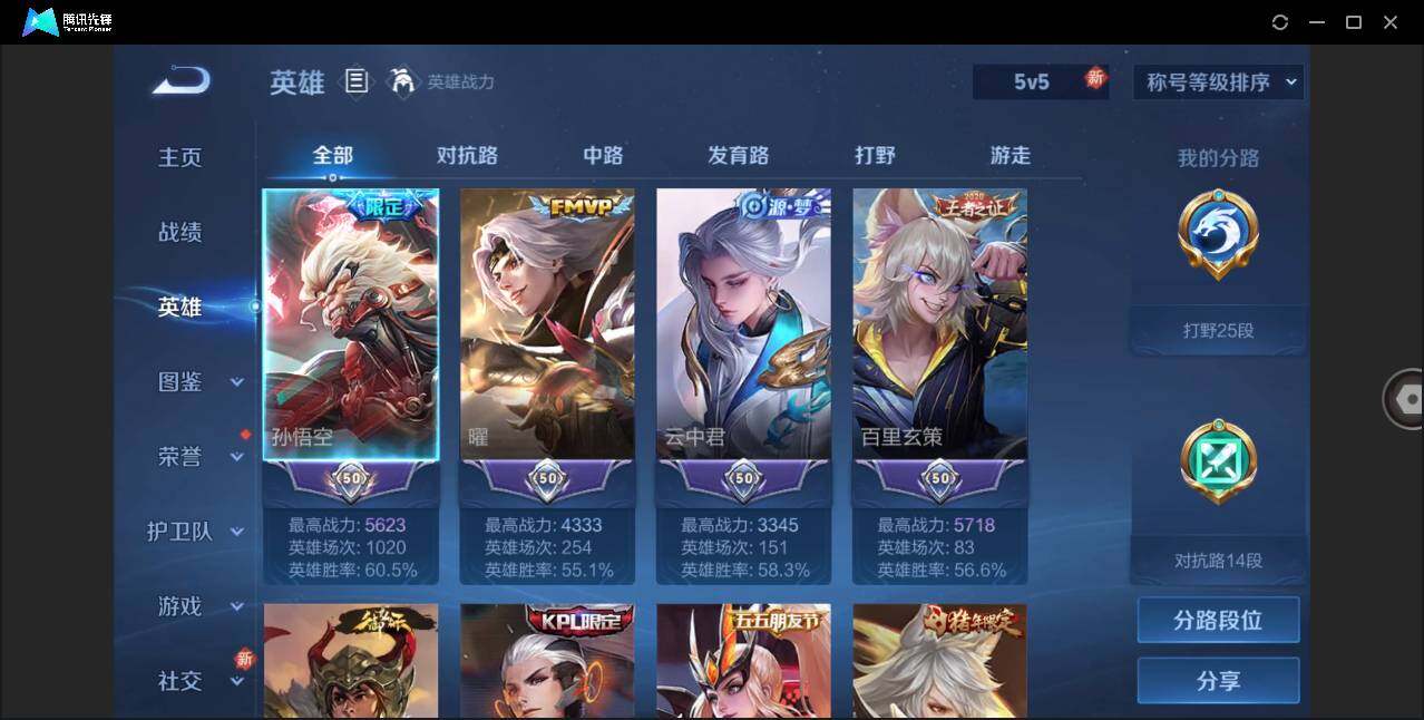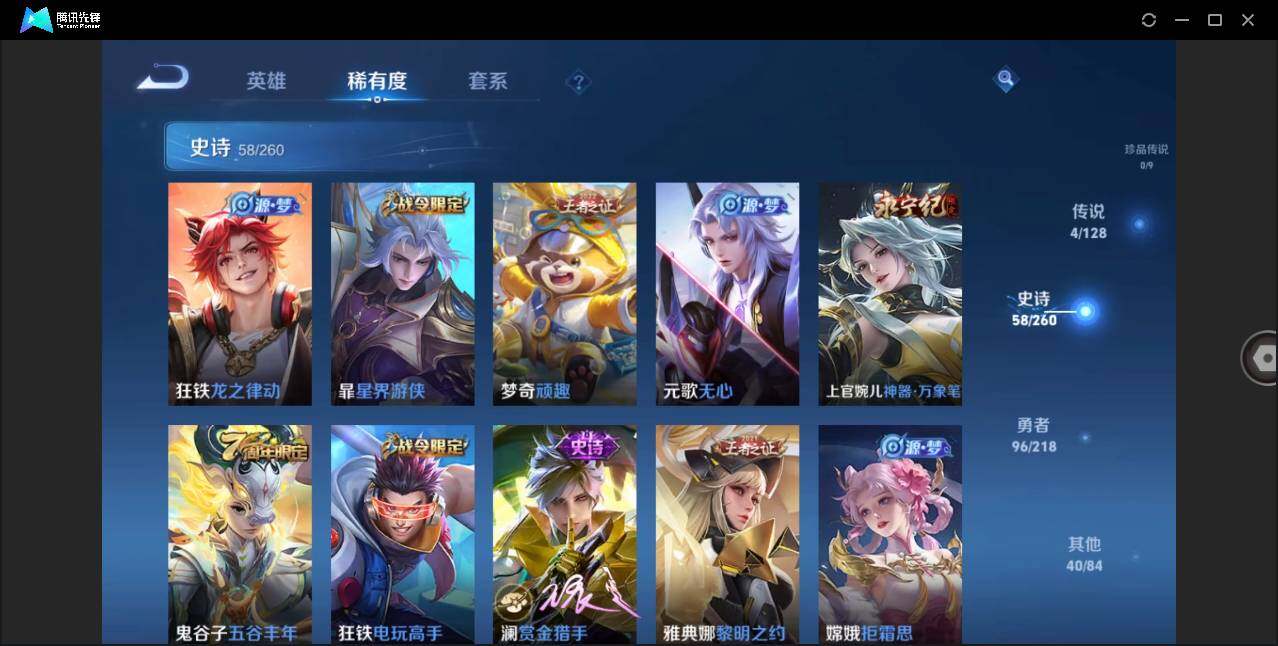 - [12166499]V5 3传说 38英雄 38皮肤 可修改实名 优质装备:绛天战甲(鸡嘴战神),炽阳神光,涂山容容 传说皮:九山相柳 限定皮:时之奇旅-妲己 史诗皮:龙之律动,百相守梦-周瑜,百相守梦-黄忠,冰冠公主,无限星赏官,时之恋人-孙尚香,鬼剑武藏,暗渊魔法,鹰眼统帅,魅力维加斯