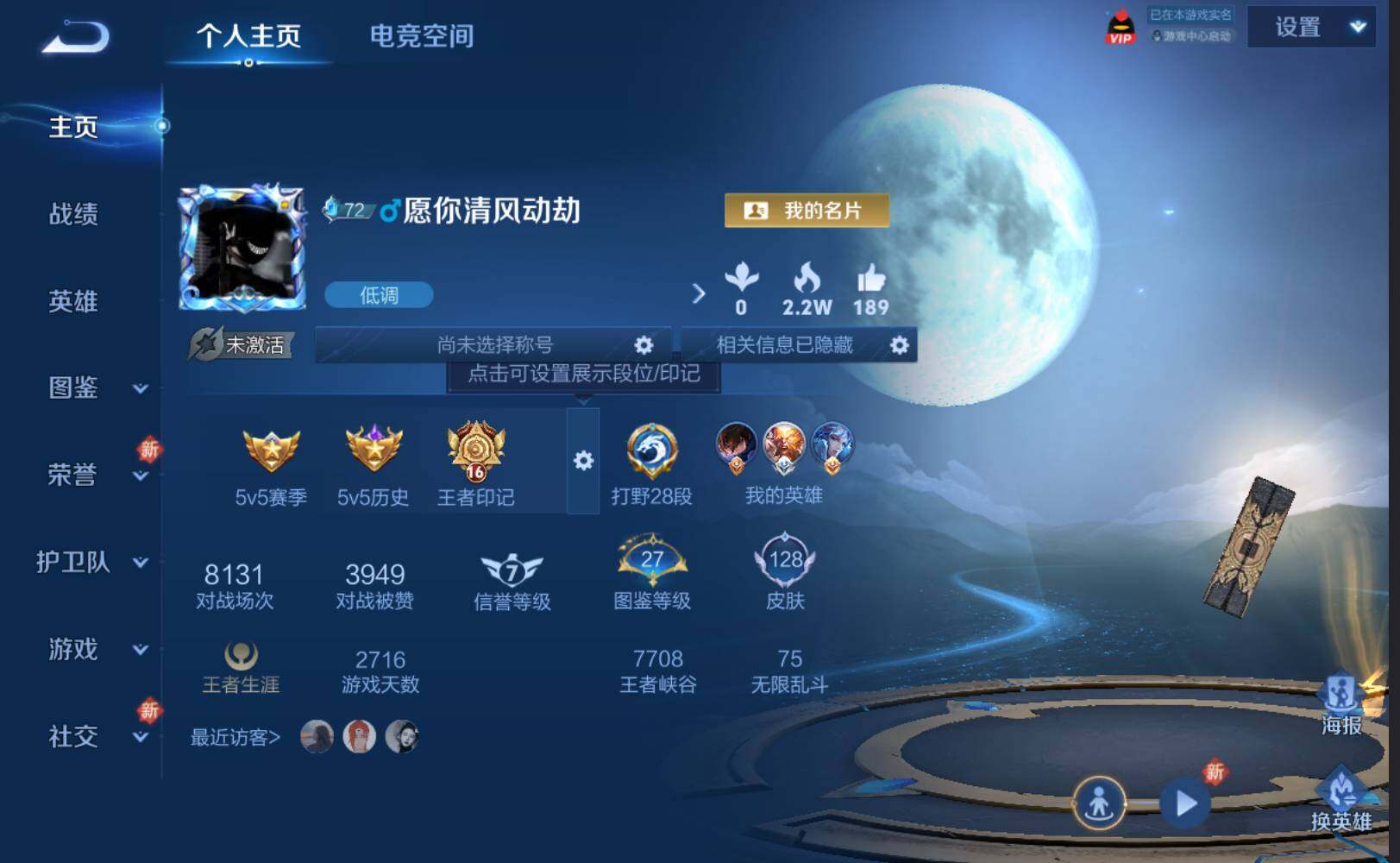 - PX_2074560-安卓Q 【包人脸】 英雄数量:123 皮肤数量:248 贵族等级:贵族V8 【信用分79,游戏无限制】【星传说 星际治安官 未来机甲】无双限定1 传说品质19 史诗品质59甄姬雪境奇遇 祈雪灵祝 愿照·千秋盛 愿照·岁时盈 诗剑行 猫影幻舞 云霓雀翎 一念神魔 幻光神枪 绯月行 末日机甲女 浮生妄 无限倾心女 启明星使 黄金射手座 胖达荣荣 超时空战士男 鸣野蒿 逐花归海 乘