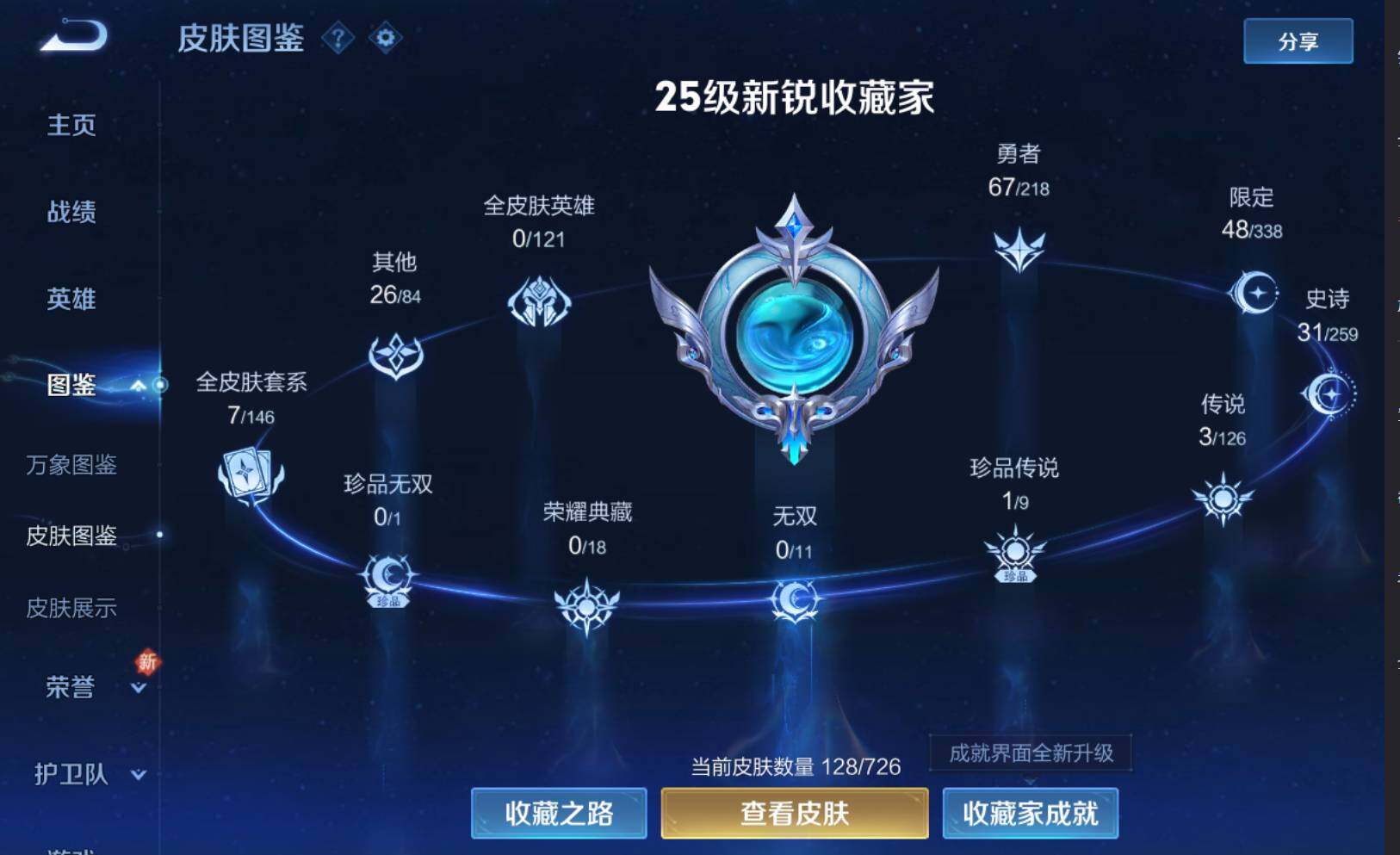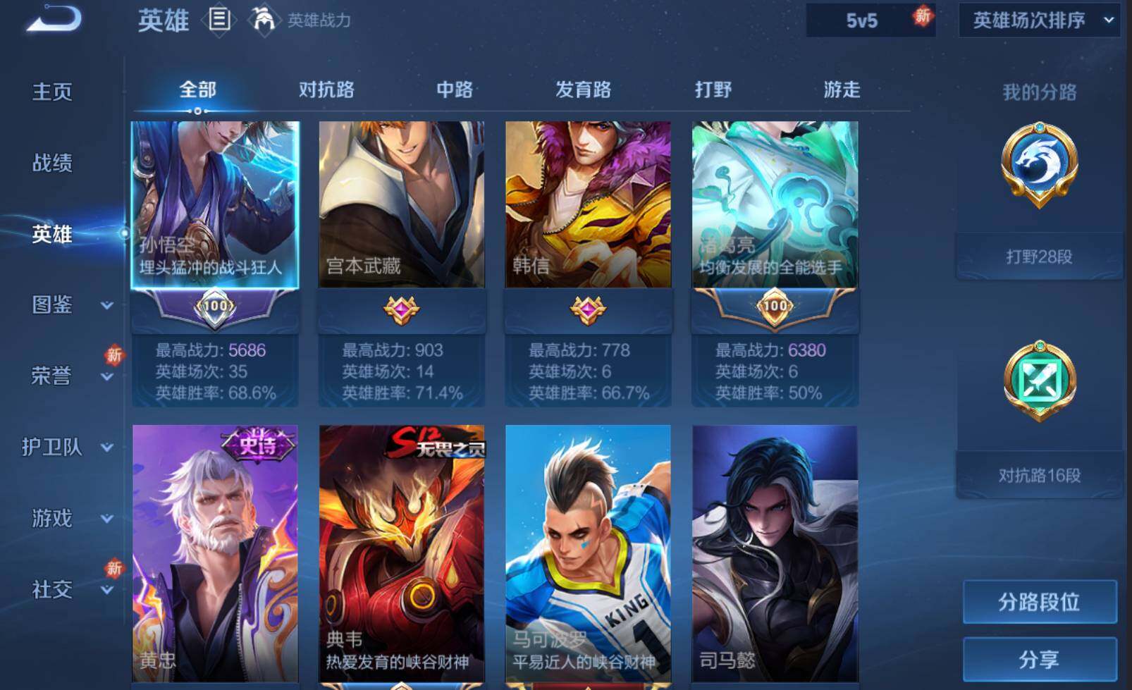 - PX_2093906-实名: 可修改 贵族等级: V5 英雄数: 119 皮肤数: 146 星传说: 未来机甲 传说皮: 末日机甲-孙尚香,山海·苍雷引 限定皮: 遇见飞天,李小龙,梁祝,高山流水,五谷丰年,山海·玄木吟