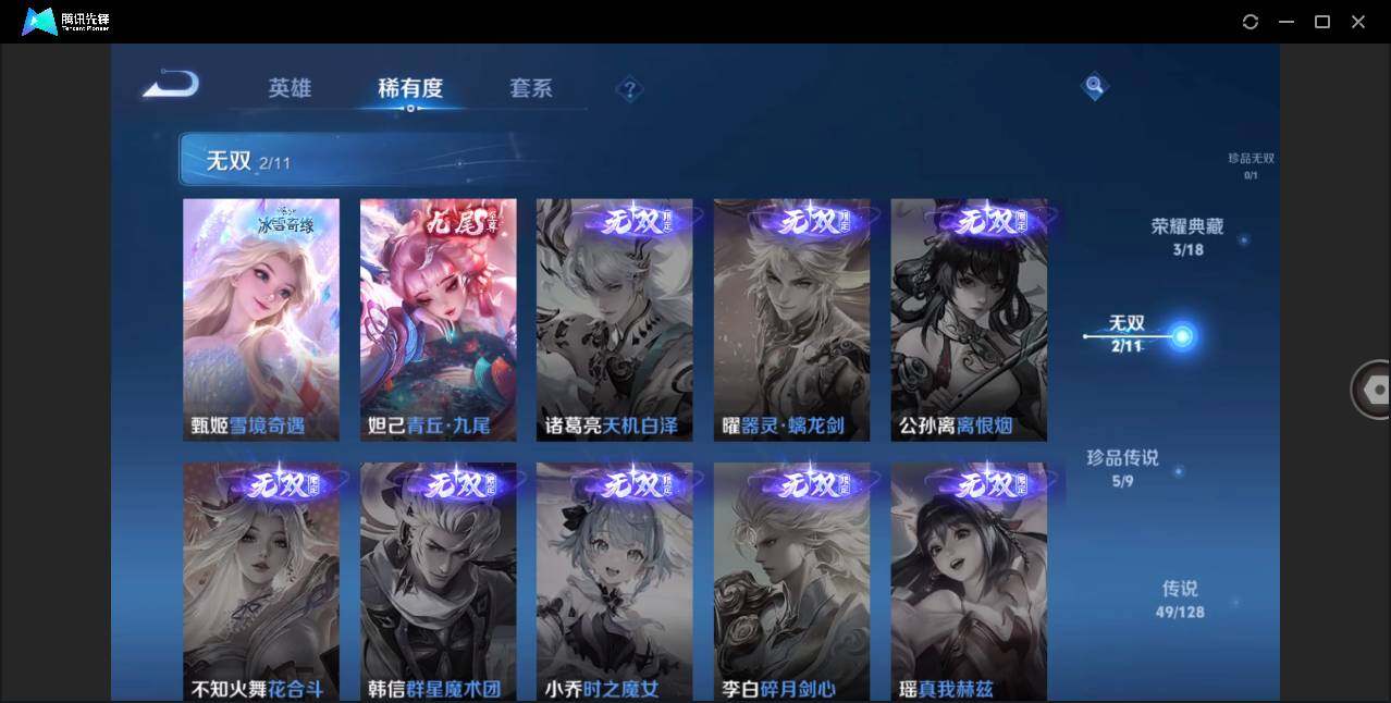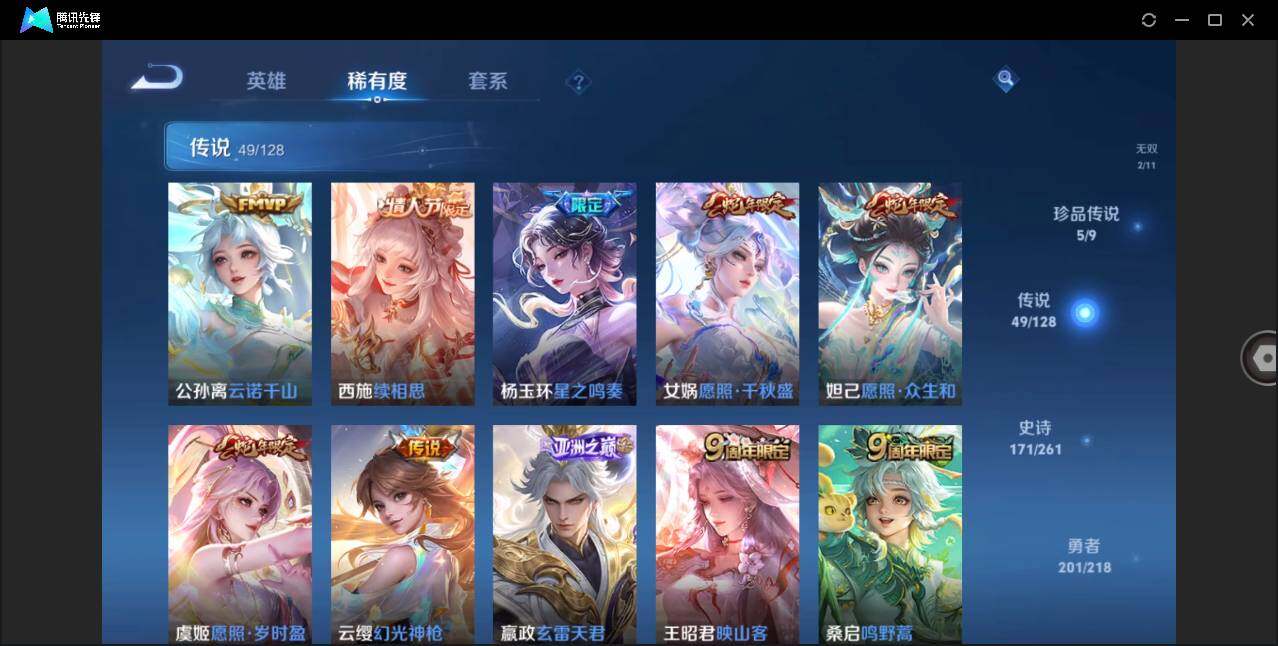 - [11471436]V9 1典藏 6传说 123英雄 245皮肤 可修改实名 女号 优质装备:星域神启(倪克斯贼亮),猫影幻舞,末日机甲-孙尚香(绿蚂蚱),仲夏夜之梦(大飞蛾),琥珀纪元铠 珍宝阁皮:优雅恋人,蔷薇恋人 限定皮:陌上桑,怒海麟威,降魔,五谷丰年,青龙志(铠年限),游园惊梦,梁祝,御风骁将(吕布年限),李小龙,辉光之辰,孙行者,神奇女侠,百木心枪,梦圆繁星 史诗皮:谪仙醉月,琥珀纪元伽罗,紫霞仙子,苍穹之光,电玩小子(小书包),黄金分割率,特工魅影,千年之狐,永昼,江河有灵,百解令(蒙犽),魅语,无限星赏官,晚萤,末日机甲-吕布,猫狗日记-孙策,猫狗日记-大乔,时之恋人-孙尚香,修罗,女仆咖啡,摇滚巨星,水果甜心,绅士熊喵,天才门将,心灵骇客,暗隐猎兽者,幽灵船长,鬼剑武藏,地狱岩魂,纤云弄巧,逐浪之夏,水晶猎龙者,箭羽风息,唤灵魅影,金属风暴,原初追逐者,圣诞恋歌,鹰眼统帅,王者之锤,暗夜贵公子,魅力维加斯,赏金猎手,奇遇舞章,无心
