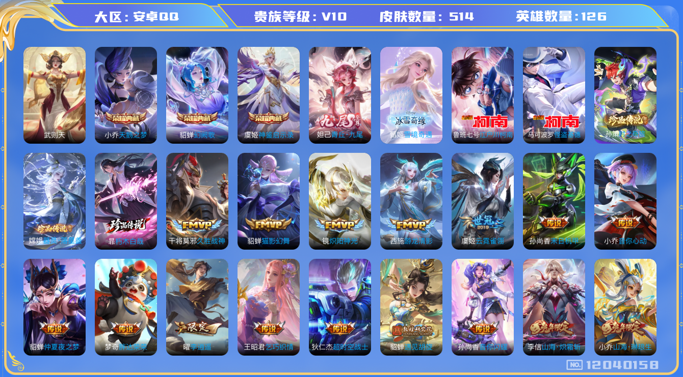 [12040158]中路39段【暑期末清货/特价急出/永久包赔】:安卓Q-V10-最强王者段位-126英雄-514皮肤-3典藏-2无双-5珍品传说-49传说-170史诗