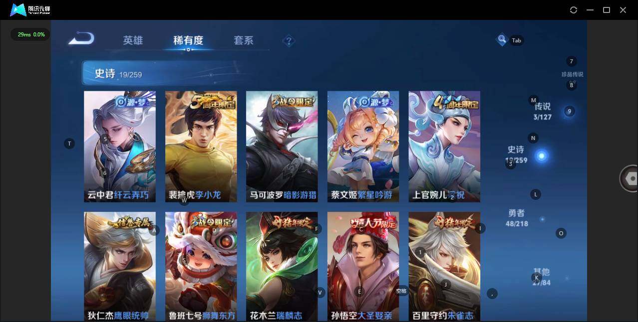 - [12296917]V7 2珍品传说 25传说 117英雄 155皮肤 可修改实名 优质装备:酷洛米之心,大耳狗之梦,黄金射手座,云鹰飞将(小将军),绛天战甲(鸡嘴战神),久胜战神,炽阳神光,一念神魔,云霓雀翎,末日机甲-孙尚香(绿蚂蚱),地狱火,海洋之心,飞鸢探春,乞巧织情,淬星耀世,妄想实况,霜月吟,澜逐花归海 传说皮:九山相柳,云诺千山,祥瑞亨通 珍宝阁皮:蔷薇恋人 限定皮:愿照·九州拓(澜年限),愿照·岁时盈(虞姬年限),愿照·众生和(妲己年限),愿照·千秋盛(女娲年限),鸣野蒿,高山流水,怒海麟威,神器·万象笔 史诗皮:赞萌露比,鸭鸭历险记-刘禅,苍鳞隐世,绮世丹青,星界战将,龙之律动,雪豹·霜爪,星界特工,百相守梦-黄忠,黄金分割率,高渐离燃音魔法,无限星赏官,偶像歌手,节奏热浪,修罗,女仆咖啡,摇滚巨星,水果甜心,绅士熊喵,功夫厨神,暗隐猎兽者,鬼剑武藏,地狱岩魂,乘风破浪,逐浪之夏,曙光守护者,热力回旋,箭羽风息,圣诞狂欢,鹰眼统帅,魅力维加斯,未来纪元-赵云
