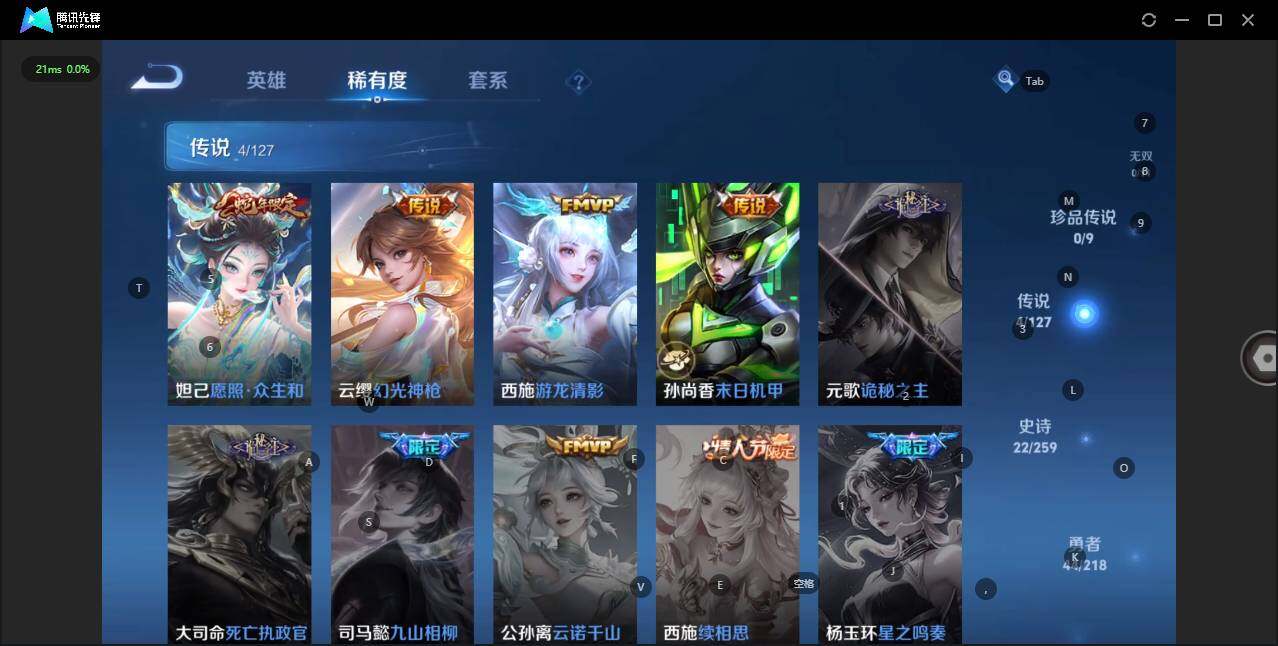 - [11760731]V8 1典藏 1珍品传说 8传说 124英雄 220皮肤 可修改实名 女号 优质装备:无限飓风号(高达),怪盗基德,猫影幻舞,末日机甲-孙尚香(绿蚂蚱),遇见胡旋,挚爱之约,澜逐花归海 珍宝阁皮:蔷薇恋人,玩趣恶龙 限定皮:逐霄战戟,异界灵契(白毛香),傲雪梅枪,神威(电光马子),遇见飞天,高山流水,五谷丰年,梁祝,李小龙,如梦令-后羿,霸王别姬-虞姬,纯白花嫁,孙行者,猪悟能,青春决赛季,乒乒小将,匿光追影者,时之祈愿-瑶(瑶传限) 史诗皮:龙之律动,百相守梦-周瑜,百相守梦-黄忠,织梦人,电玩小子(小书包),白龙吟,黄金分割率,永昼,偶像歌手,时之恋人-孙尚香,乱世虎臣,节奏热浪,女仆咖啡,水果甜心,星夜王子,时之奇旅-安琪拉,功夫厨神,德古拉伯爵,暗隐猎兽者,鬼剑武藏,心灵战警,地狱岩魂,纤云弄巧,繁星吟游(呼啦呼啦),拒霜思,缤纷独角兽,乘风破浪,逐浪之夏,曙光守护者,唤灵魅影,金属风暴,圣诞狂欢,圣诞恋歌,鹰眼统帅,魅力维加斯,黎明之约,未来纪元-赵云