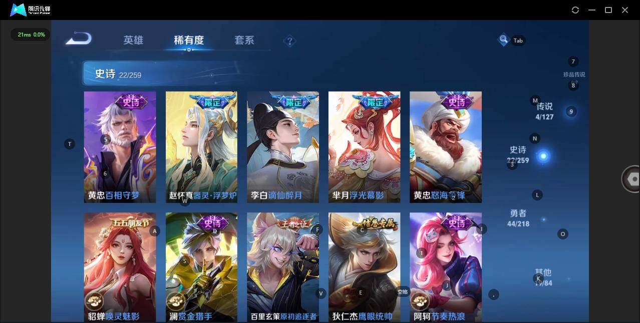 - [11528164]V9 2典藏 1无双 2珍品传说 22传说 125英雄 299皮肤 可修改实名 优质装备:鸣剑·曳影,弑枪猎影(韩信典藏),离恨烟(公孙离无双),朽木白哉,黑崎一护,黄金狮子座,云鹰飞将(小将军),绛天战甲(鸡嘴战神),炽阳神光,末日机甲-孙尚香(绿蚂蚱),地狱火,地狱之眼,时之恋人-刘备(电焊工),淬星耀世,无双飞将,山海·炽霜斩(李信年限),灼幽烈阳,妄想实况,澜逐花归海 传说皮:乘龙·铭钟鼎(赵云年限),乘龙·淬吴钩(孙策年限) 珍宝阁皮:妄想食味 限定皮:陌上桑,夏侯惇霜北刀,至尊宝,白虎志(电光耗子),白晶晶,时雨天司(水龙头),飞衡(韩信年限),瑞麟志(木兰年限),遇见飞天,青龙志(铠年限),武圣,天狼狩猎者,龙胆,烈魂,岱宗(典韦年限),玄武志(苏烈年限),朱雀志(守约年限),如梦令-后羿,圣诞老人,默契交锋-兰陵王,孙行者,大圣娶亲,引擎之心,百木心枪,时之奇旅-妲己,神器·万象笔,梦圆繁星 史诗皮:星界战将,龙之律动,石田雨龙,撼地雄心,破空之剑,涂山红红,东方月初,蒙犽顽岩魄,琥珀纪元伽罗,蔬乡物语(鲁班七号),紫霞仙子,苍穹之光,电玩小子(小书包),白龙吟,黄金分割率,特工魅影,千年之狐,永昼,江河有灵,末日机甲-莱西奥,雪夜绮愿(周瑜),真我赫兹(百里守约),魅语,百解令(蒙犽),高渐离燃音魔法,无限星赏官,匿光破解者,冰冠公主,偶像歌手,晚萤,暗夜猫娘,龙骑士(小龙虾),末日机甲-吕布,猫狗日记-孙策,猫狗日记-大乔,时之恋人-孙尚香,节奏热浪,修罗,女仆咖啡,水果甜心,绅士熊喵,天才门将,星夜王子,心灵骇客,功夫厨神,德古拉伯爵,暗隐猎兽者,幽灵船长,鬼剑武藏,暗渊魔法,舞动绿茵,地狱岩魂,纤云弄巧,拒霜思,缤纷独角兽,乘风破浪,逐浪之夏,水晶猎龙者,曙光守护者,箭羽风息,金属风暴,圣诞恋歌,鹰眼统帅,暗夜贵公子,雪上飞焰,赏金猎手,滕王阁序,未来纪元-赵云