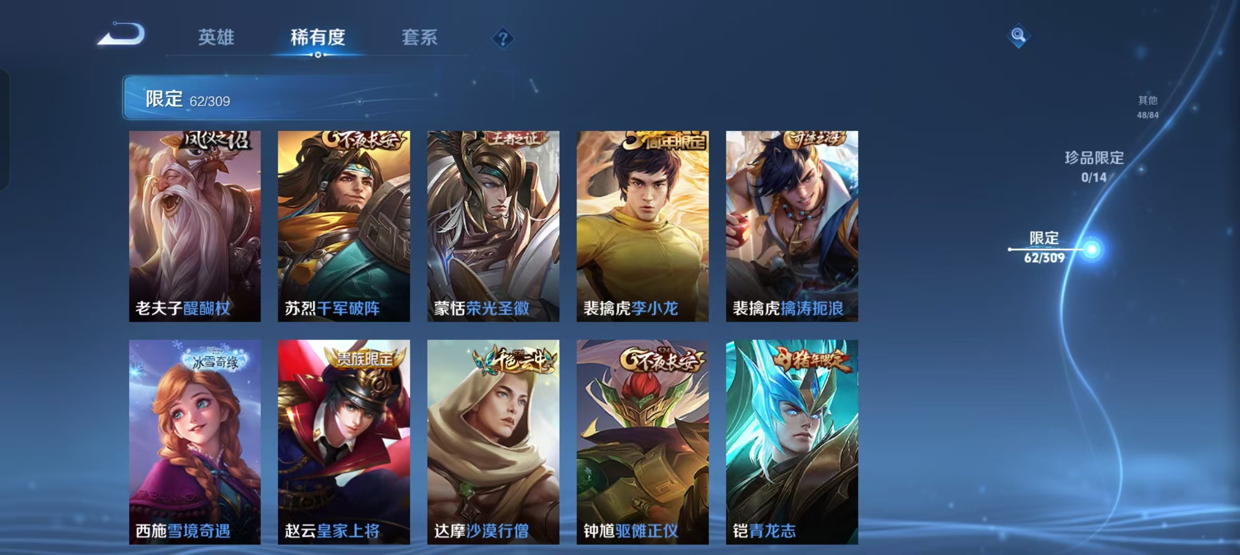 - [11867350]V6 2传说 123英雄 141皮肤 可修改实名 珍宝阁皮:蔷薇恋人 限定皮:愿照·九州拓(澜年限),愿照·岁时盈(虞姬年限),至尊宝,飞衡(韩信年限),梁祝,李小龙 史诗皮:器灵·浮梦炉,石田雨龙,茶境仙,百相守梦-黄忠,织梦人,紫霞仙子,黄金分割率,特工魅影,千年之狐,冰冠公主,偶像歌手,猫狗日记-孙策,乱世虎臣,节奏热浪,女仆咖啡,水果甜心,德古拉伯爵,鬼剑武藏,纤云弄巧,繁星吟游(呼啦呼啦),缤纷独角兽,水晶猎龙者,曙光守护者,金属风暴,鹰眼统帅,未来纪元-赵云