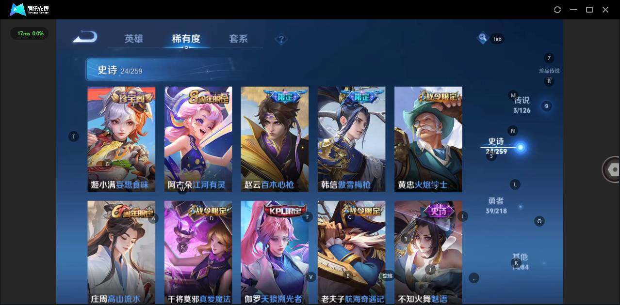 - [11937372]V8 1典藏 16传说 124英雄 265皮肤 可修改实名 优质装备:杀手不太冷,冠军飞将,黄金白羊座,一念神魔,云霓雀翎,仲夏夜之梦(大飞蛾),胖达荣荣,淬星耀世,超时空战士-狄仁杰,山海·苍雷引(电光曜子),遇见神鼓,涂山容容 珍宝阁皮:胡桃夹子,蔷薇恋人,女武神 限定皮:愿照·岁时盈(虞姬年限),鸣野蒿,傲雪梅枪,时雨天司(水龙头),无限倾心-项羽,高山流水,怒海麟威,五谷丰年,青龙志(铠年限),冰锋战神,李小龙,朱雀志(守约年限),孙行者,猪悟能,大圣娶亲,山海·玄木吟(马可年限) 史诗皮:狼魂孤将,星界战将,龙之律动,百相守梦-黄忠,遇见神鹿,紫霞仙子,电玩小子(小书包),特工魅影,永昼,江河有灵,真我赫兹(镜),真我赫兹(百里守约),蒙恬荣光圣徽,无限星赏官,青蛇,偶像歌手,晚萤,百相守梦(刘备),末日机甲-吕布,猫狗日记-孙策,乱世虎臣,修罗,女仆咖啡,摇滚巨星,水果甜心,绅士熊喵,星夜王子,心灵骇客,功夫厨神,德古拉伯爵,暗隐猎兽者,幽灵船长,鬼剑武藏,舞动绿茵,纤云弄巧,拒霜思,缤纷独角兽,乘风破浪,逐浪之夏,水晶猎龙者,曙光守护者,箭羽风息,金属风暴,原初追逐者,圣诞狂欢,圣诞恋歌,鹰眼统帅,魅力维加斯,赏金猎手,无心,玫瑰异探